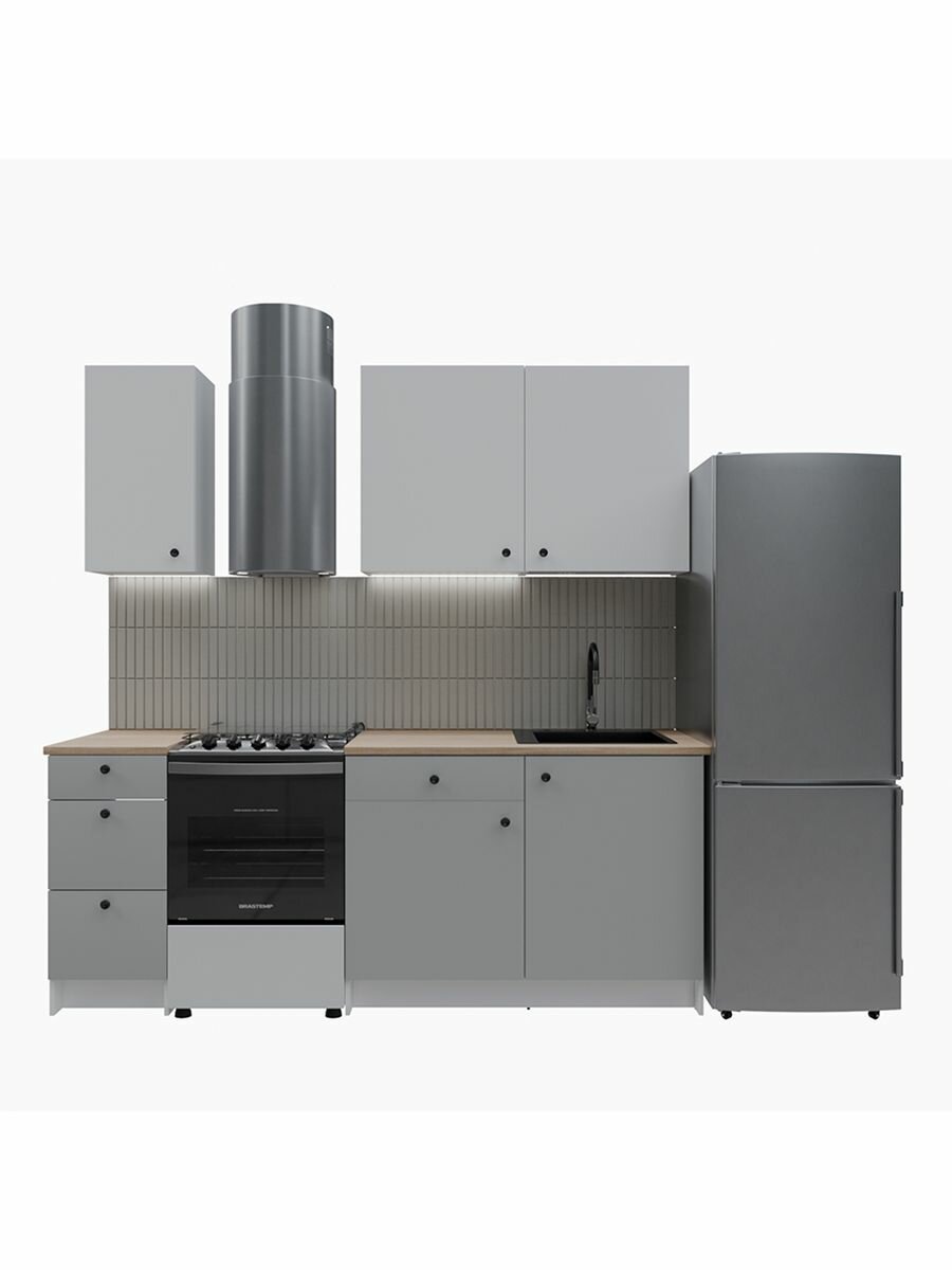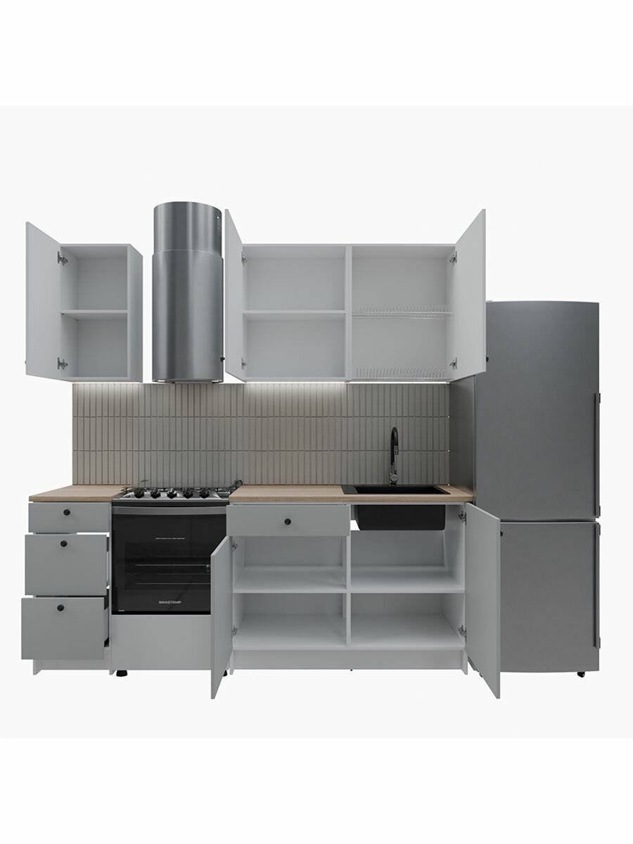 Распашной шкаф с одной полкой 60х75х31 см - 1 шт; Распашной шкаф с посудосушителем 60х75-31 см - 1 шт; Распашной шкаф с одной полкой 40х75х31 см - 1 шт; Напольный шкаф с 3 выдвижными ящиками 40х91х61 см - 1 шт; Напольный модуль с ящиком и двумя дверьми 120х91х61 см - 1 шт; Подиум для духового шкафа - комплект 2 шт.