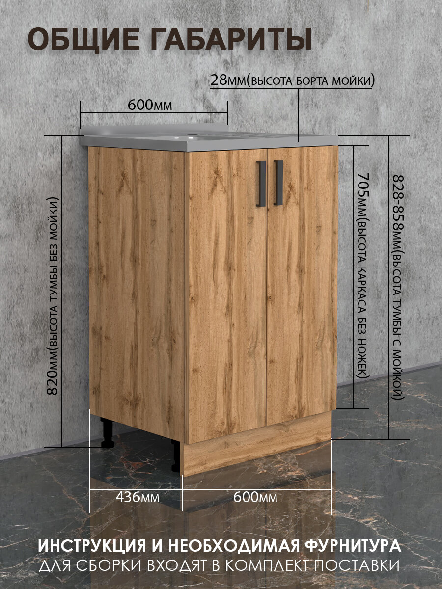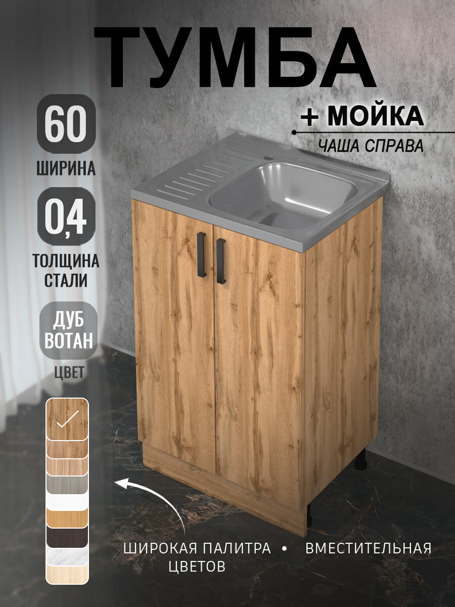Купить Кухонный гарнитур. Комплект, Тумба на кухню 60х82х43,6 с мойкой 60х50, чаша справа, 0,4 мм, дуб вотан с доставкой по всей России. Кухонный гарнитур. Комплект, Тумба на кухню 60х82х43,6 с мойкой 60х50, чаша справа, 0,4 мм, дуб вотан: сравнение цен, характеристики, фото, актуальное наличие и цены.