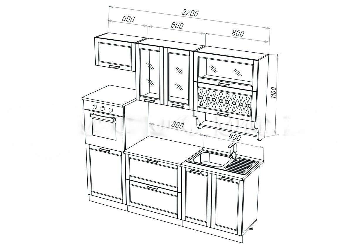 Верх: ШВ800-2шт ШВ400-1шт Низ: ШНМ800-1шт ШН800-1шт ШН3Я400-1шт Столешницы 800+400