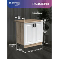 Купить Кухонный гарнитур модуль напольный SANTREK 80 цвет белый столешница дуб вотан МДФ с доставкой по всей России.