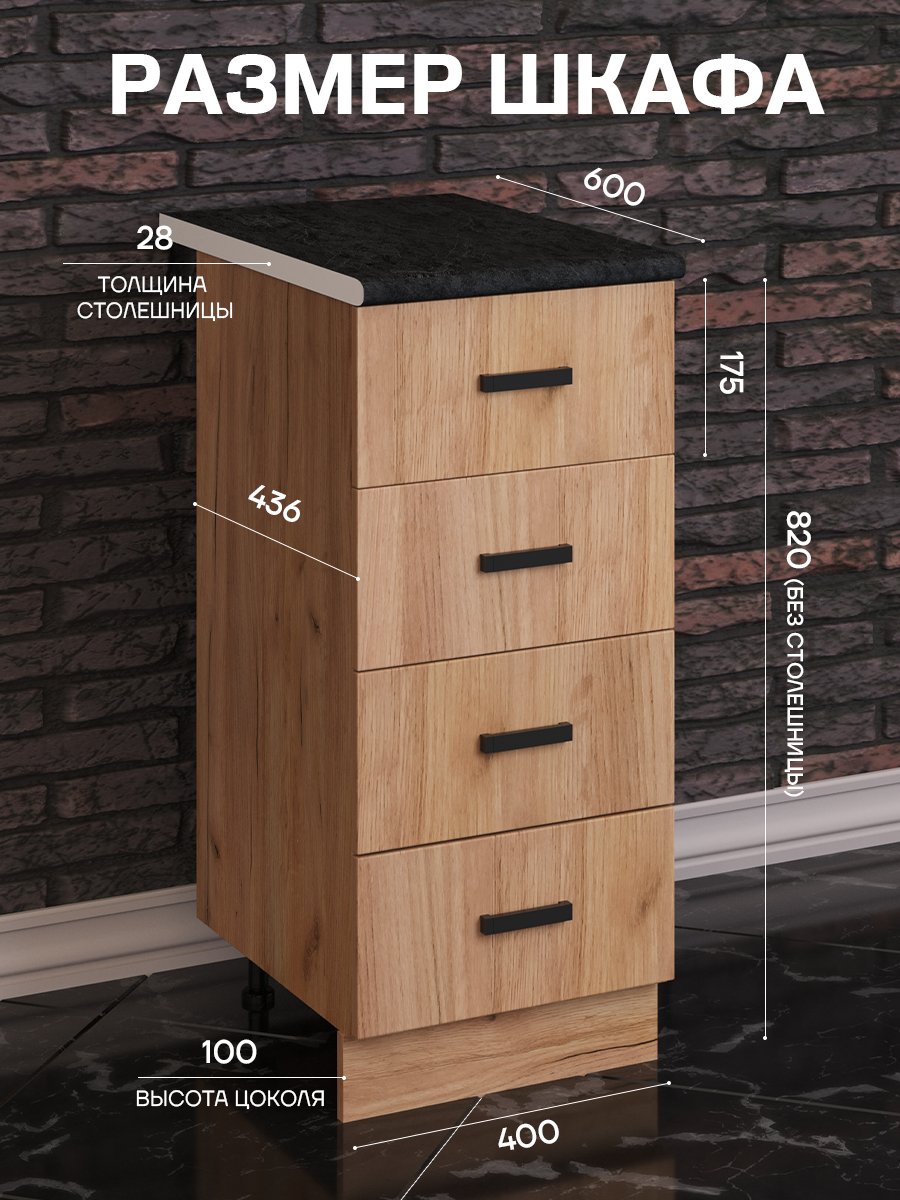 Купить Кухонный гарнитур. Модуль напольный стол разделочный 40 см, 4 ящика, дуб крафт с доставкой по всей России. Кухонный гарнитур. Модуль напольный стол разделочный 40 см, 4 ящика, дуб крафт: сравнение цен, характеристики, фото, актуальное наличие и цены.