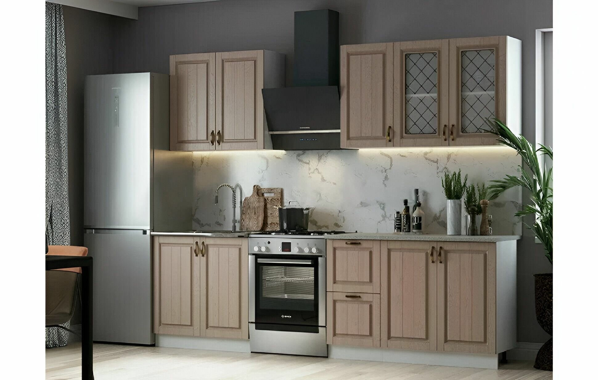 Кухня 2 метра прямая Миф Челси 2,0м Компановка №2 цвет Дуб крафт Белый/Графит столешница Кастилло