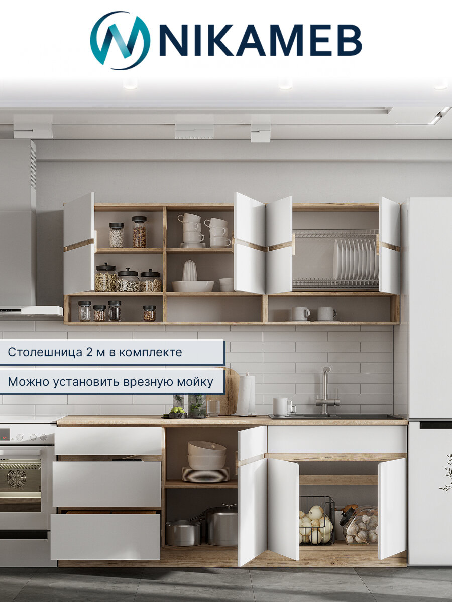 Кухонный гарнитур NIKAMEB «Брайтон», 2 метра со столешницей, ЛДСП, белый/дуб делано: сравнение цен, характеристики, фото, актуальное наличие и цены.