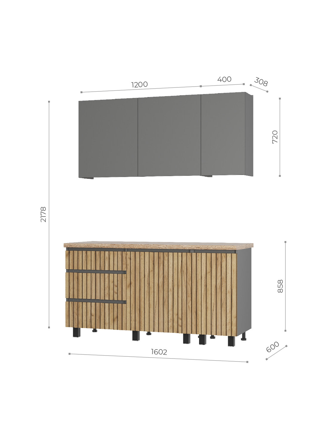 Кухонный гарнитур Nikameb Шерлок, 1.6 метра, ЛДСП (крафт/графит)