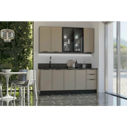 Купить Кухня «Миф» Николь 2.0/900 м холст латте, материал ЛДСП / МДФ, стекло, столешница толщиной 26 мм в комплекте с доставкой по всей России.