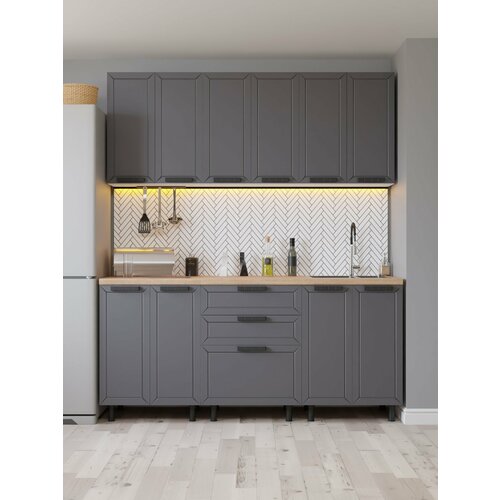 Купить Кухонный гарнитур Орбита прямой 1,8 м, графит с ящиками без столешницы с фрезеровкой с доставкой по всей России. Кухонный гарнитур Орбита прямой 1,8 м, графит с ящиками без столешницы с фрезеровкой: сравнение цен, характеристики, фото, актуальное наличие и цены.