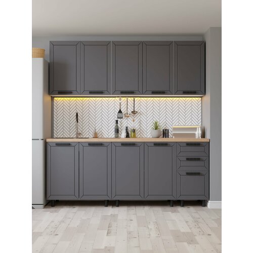 Купить Кухонный гарнитур прямой 2,0 м, графит серый с ящиками без столешницы с фрезеровкой с доставкой по всей России. Кухонный гарнитур прямой 2,0 м, графит серый с ящиками без столешницы с фрезеровкой: сравнение цен, характеристики, фото, актуальное наличие и цены.