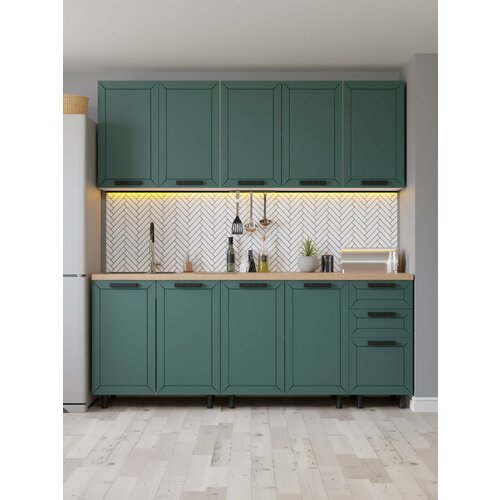 Купить Кухонный гарнитур Орбита прямой 2,0 м, зеленый с ящиками без столешницы с фрезеровкой с доставкой по всей России. Кухонный гарнитур Орбита прямой 2,0 м, зеленый с ящиками без столешницы с фрезеровкой: сравнение цен, характеристики, фото, актуальное наличие и цены.