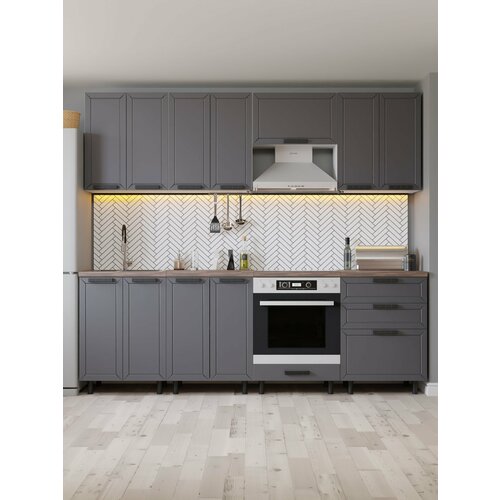 Купить Кухонный гарнитур Орбита прямой 2,4 м, графит серый с ящиками без столешницы с фрезеровкой с доставкой по всей России. Кухонный гарнитур Орбита прямой 2,4 м, графит серый с ящиками без столешницы с фрезеровкой: сравнение цен, характеристики, фото, актуальное наличие и цены.