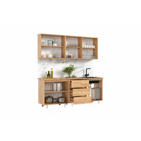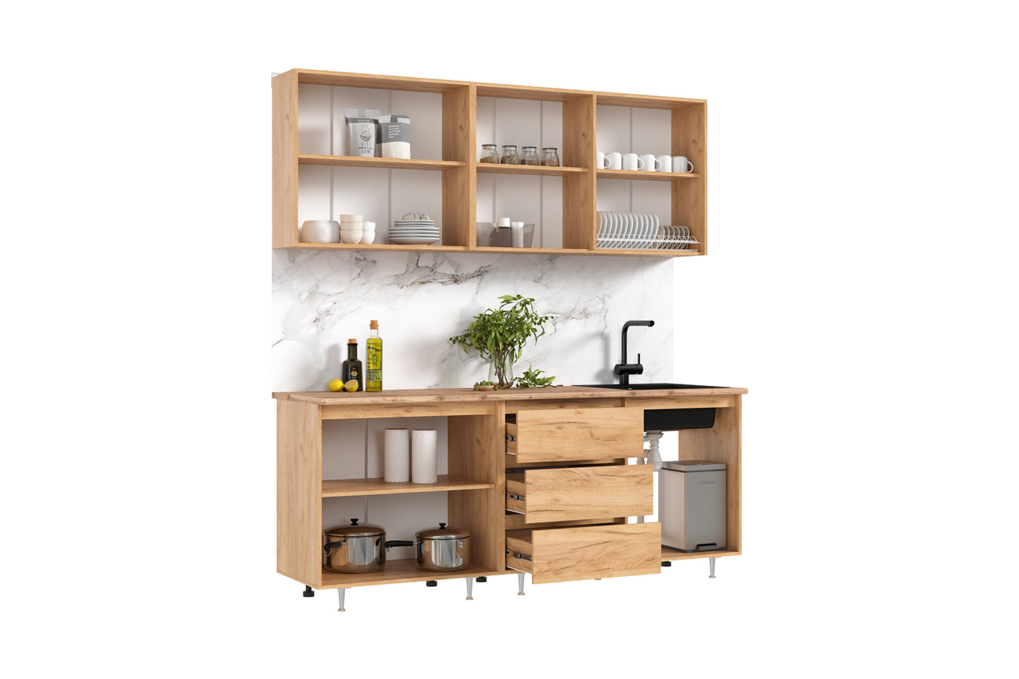 Верх (ШхВхГ): ШВ 800 - 80 х 71.8 х 30 см - 1 шт.; ШВ 1200 - 120 х 71.8 х 30 см - 1 шт. Низ (ШхВхГ): ШН 800 - 80 х 73 х 50.6 см - 1 шт.; ШНМ3Я 1200 - 120 х 73 х 50.6 см - 1 шт. Столешница 120 см - 1 шт.; Столешница 80 см - 1 шт.