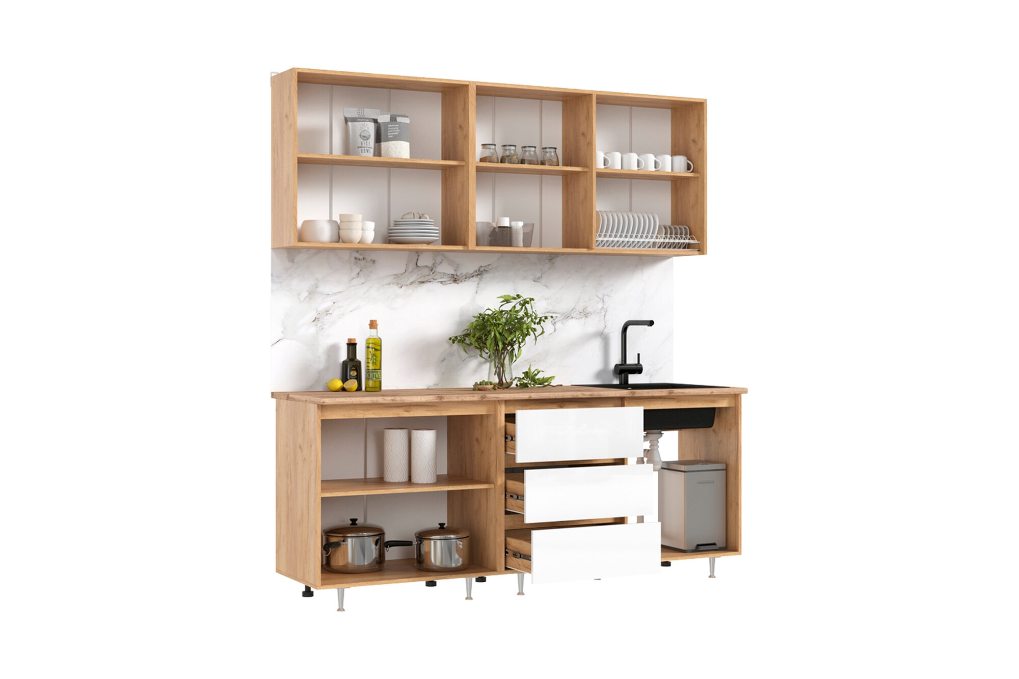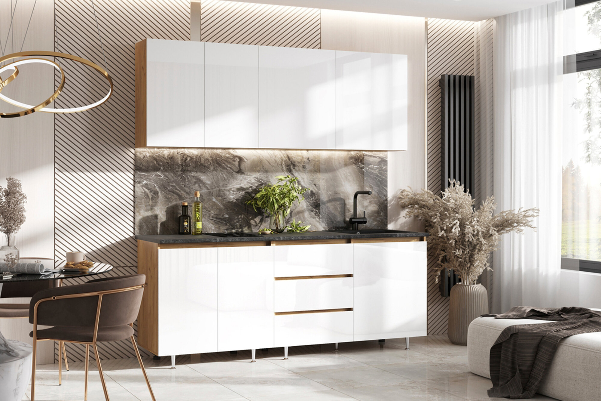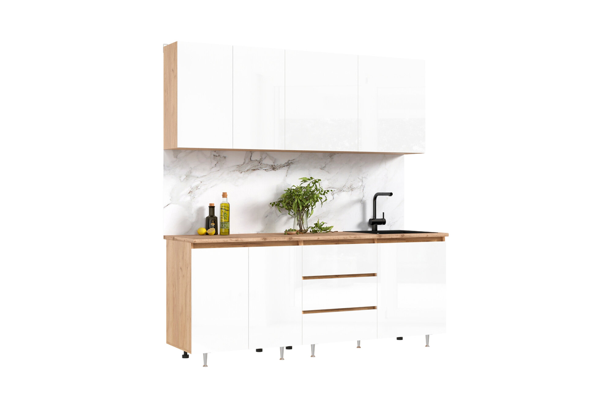 Кухонный гарнитур прямой Нонтон Челси №2, 200 см, дуб крафт / белый глянец / дуб вотан: сравнение цен, характеристики, фото, актуальное наличие и цены.