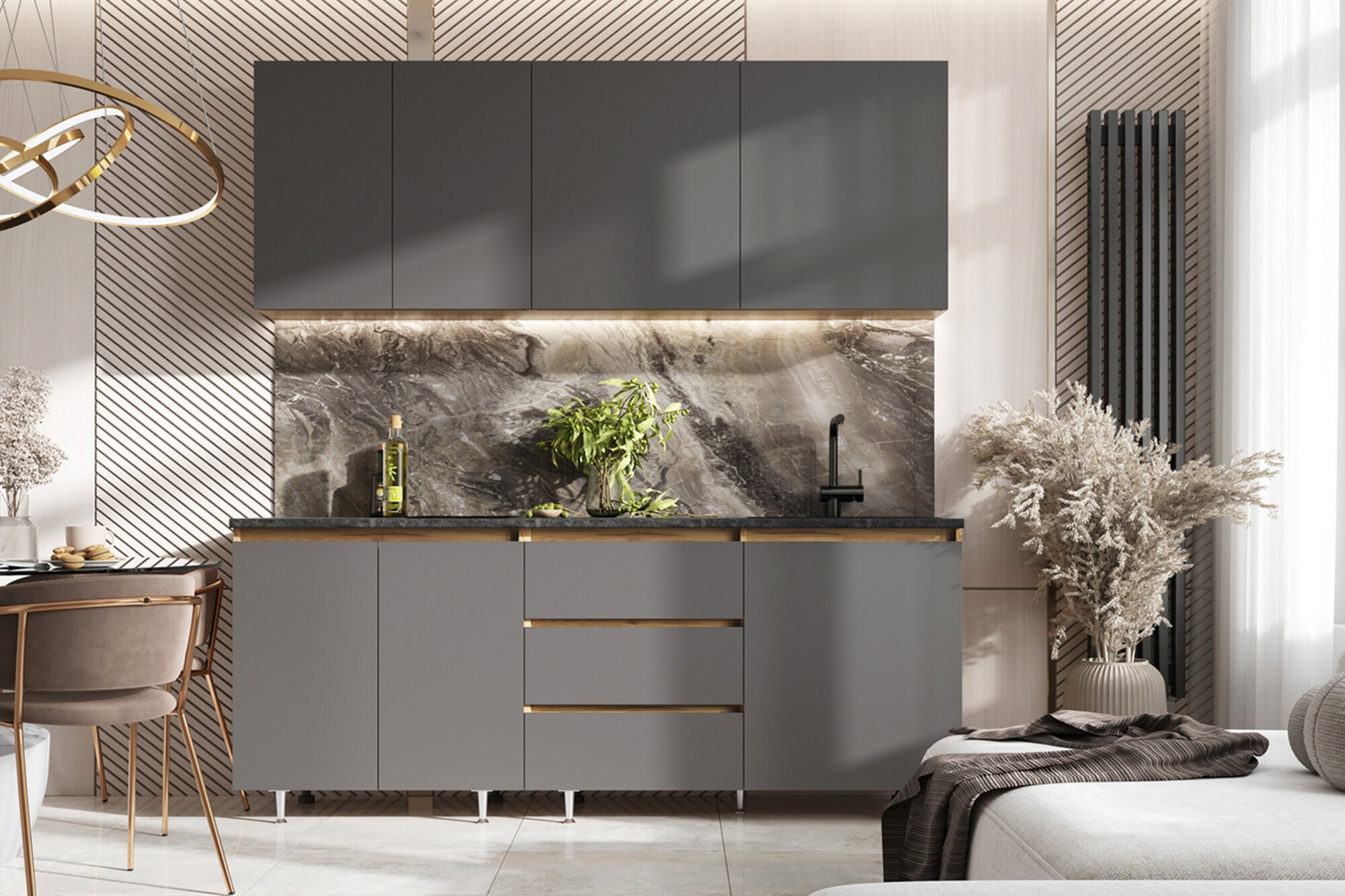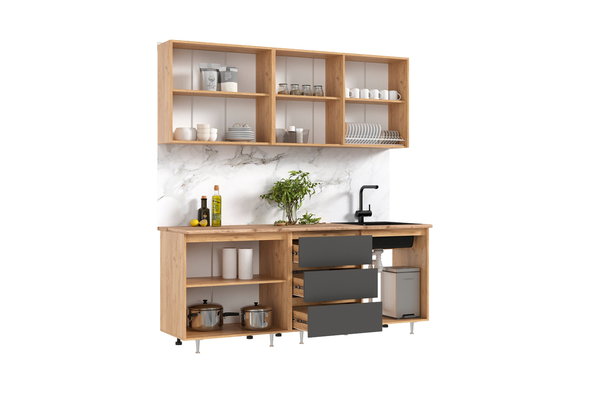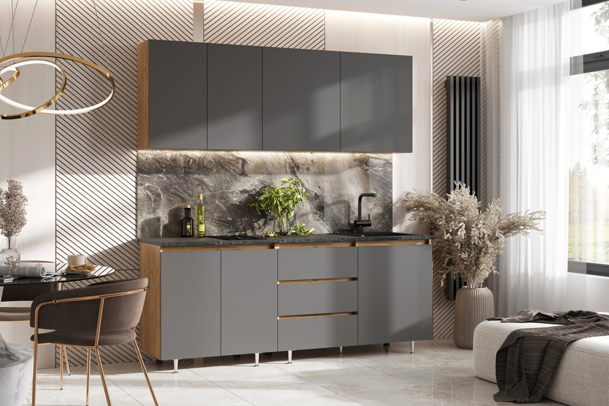 Кухонный гарнитур прямой Нонтон Челси №2, 200 см, дуб крафт / графит / дуб вотан: сравнение цен, характеристики, фото, актуальное наличие и цены.
