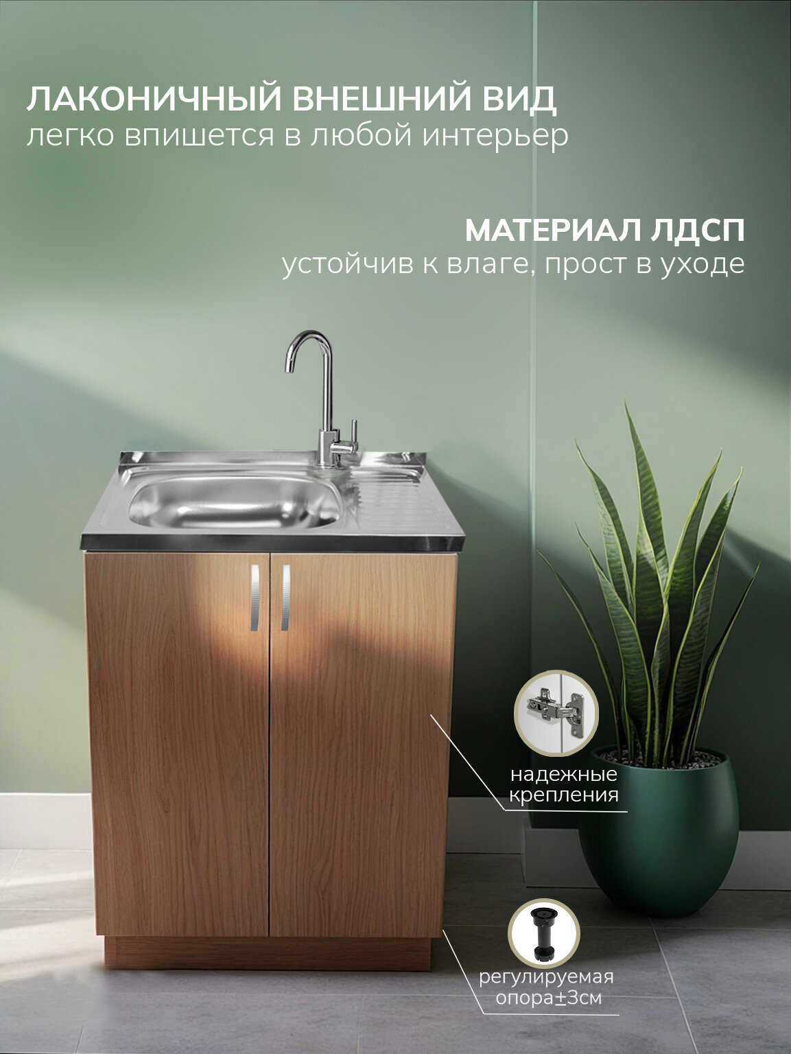 Купить Кухонный гарнитур с мойкой GoodStuff. Тумба 60 см, мойка 60х50 см с доставкой по всей России.