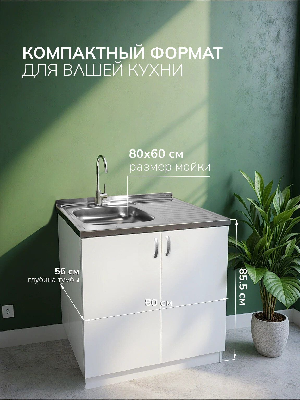 Кухонный гарнитур с мойкой GoodStuff. Тумба 80 см, мойка 80х60 см: сравнение цен, характеристики, фото, актуальное наличие и цены.