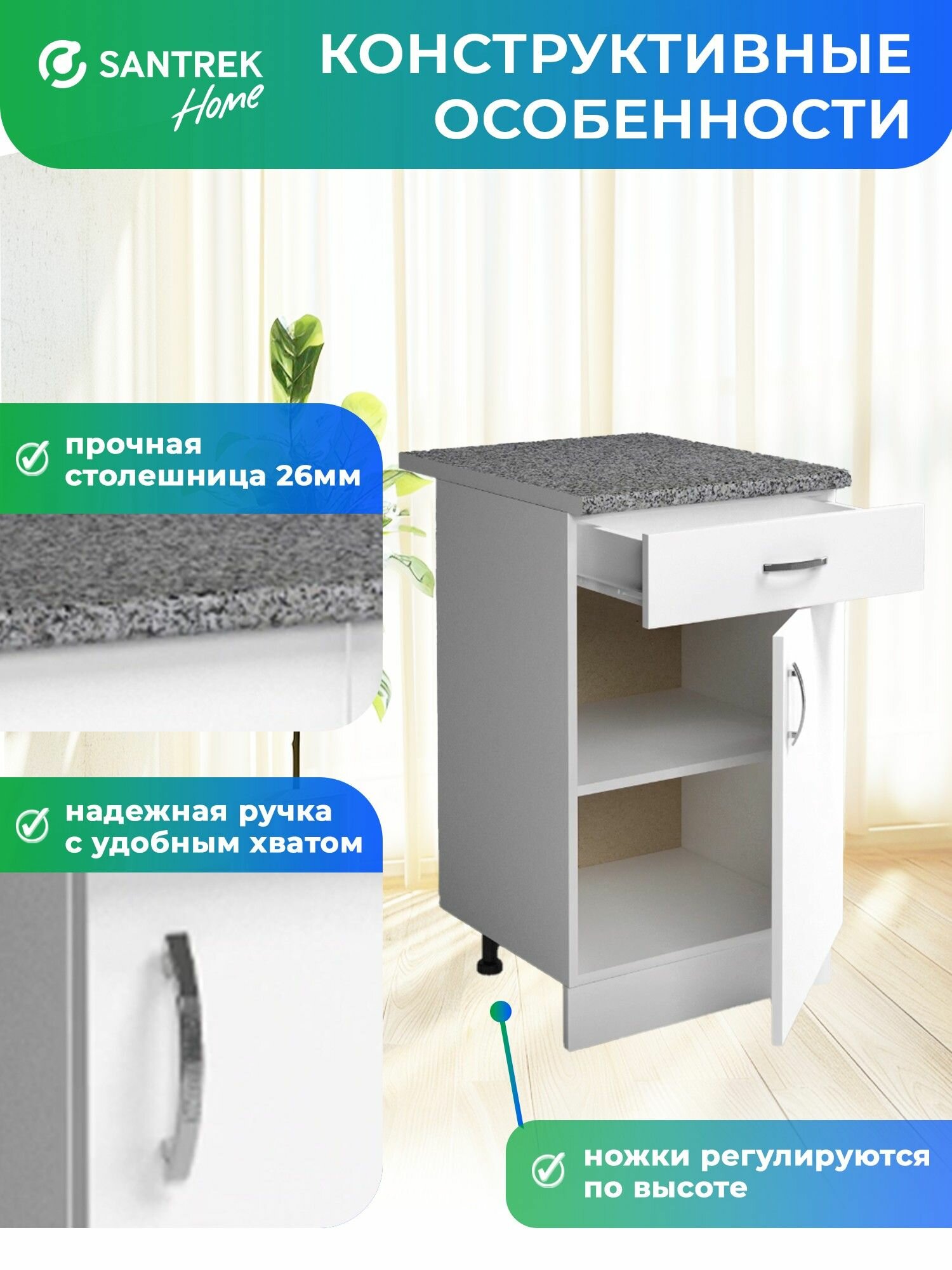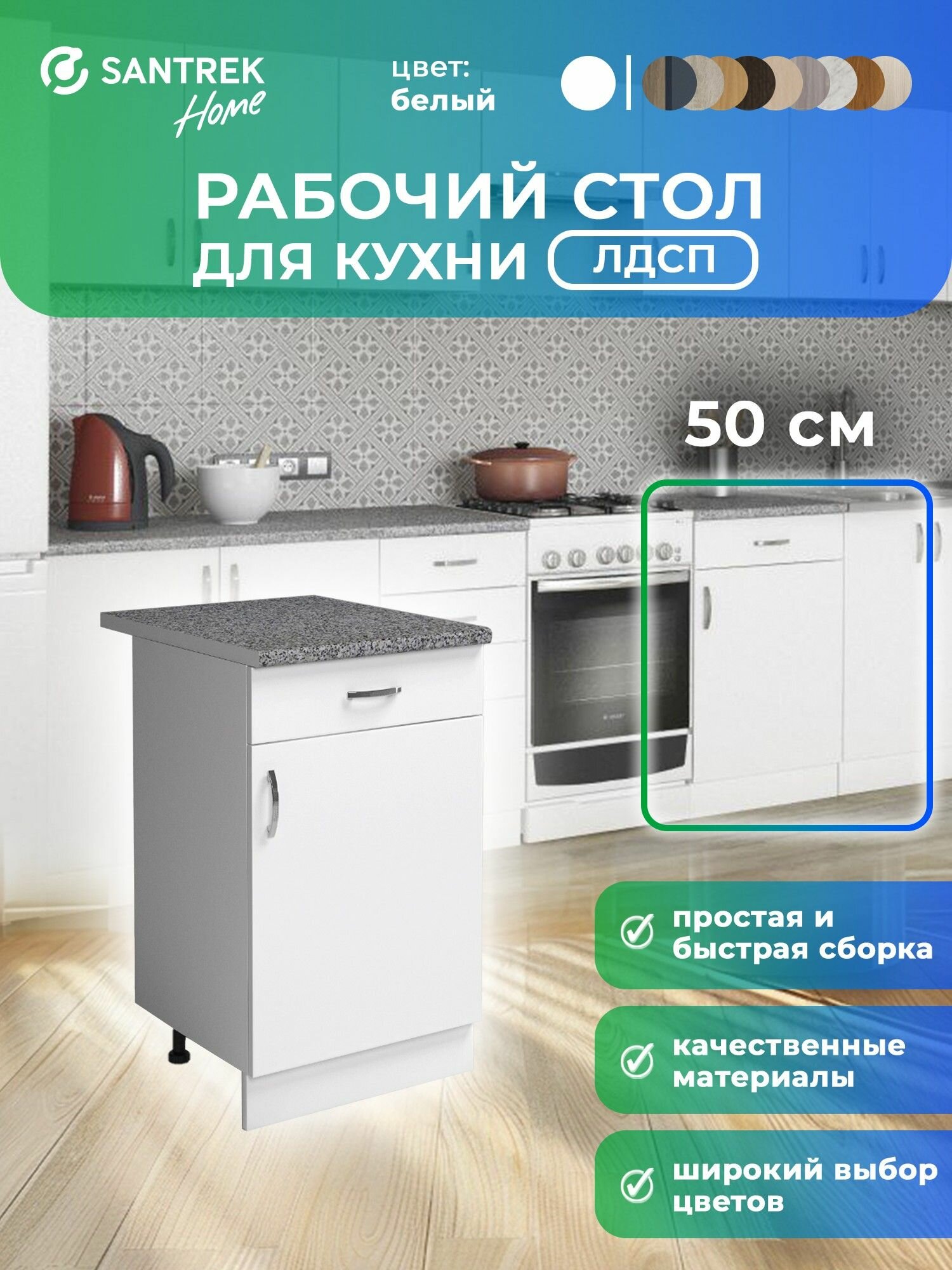 Кухонный гарнитур SANTREK Модуль напольный 50 цвет белый ЛДСП, столешница цвет гранит: сравнение цен, характеристики, фото, актуальное наличие и цены.