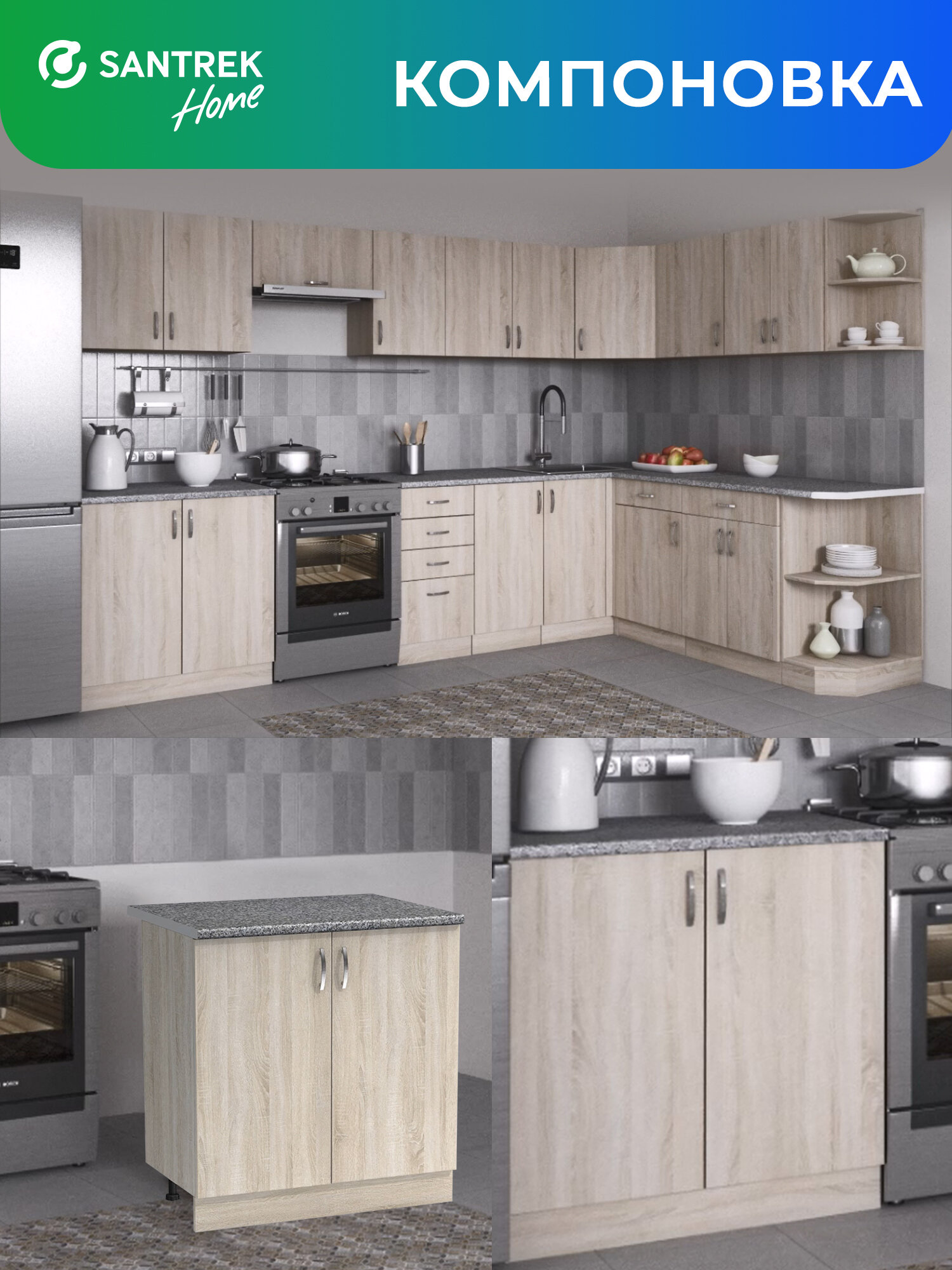 Кухонный гарнитур SANTREK Модуль напольный 80 ЛДСП цвет дуб сонома без столешницы: сравнение цен, характеристики, фото, актуальное наличие и цены.