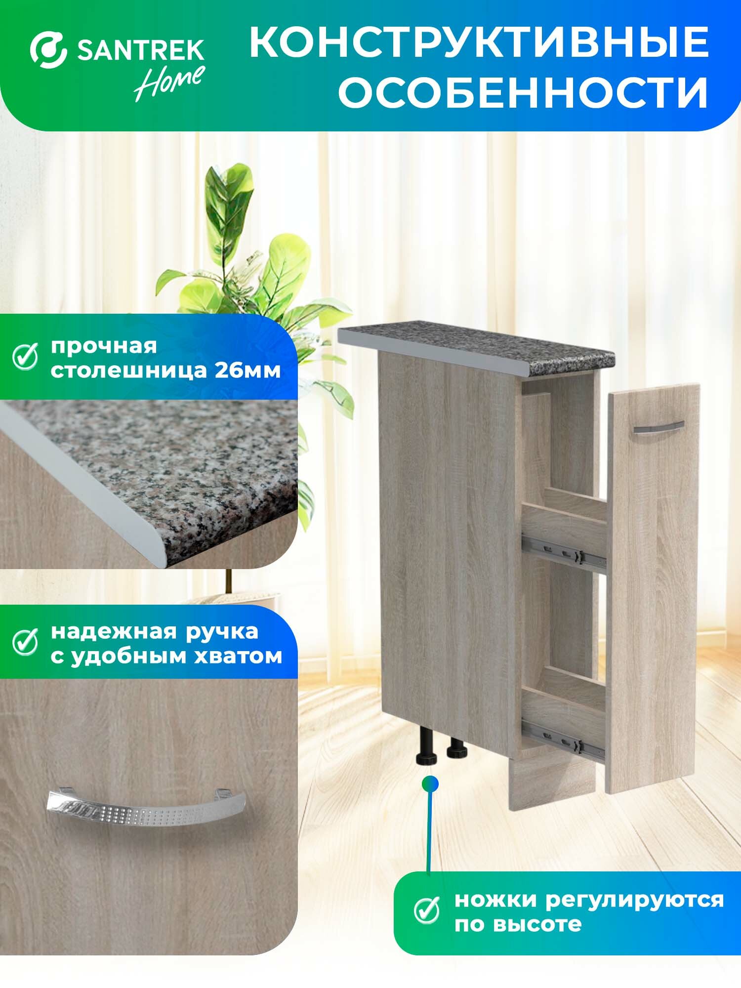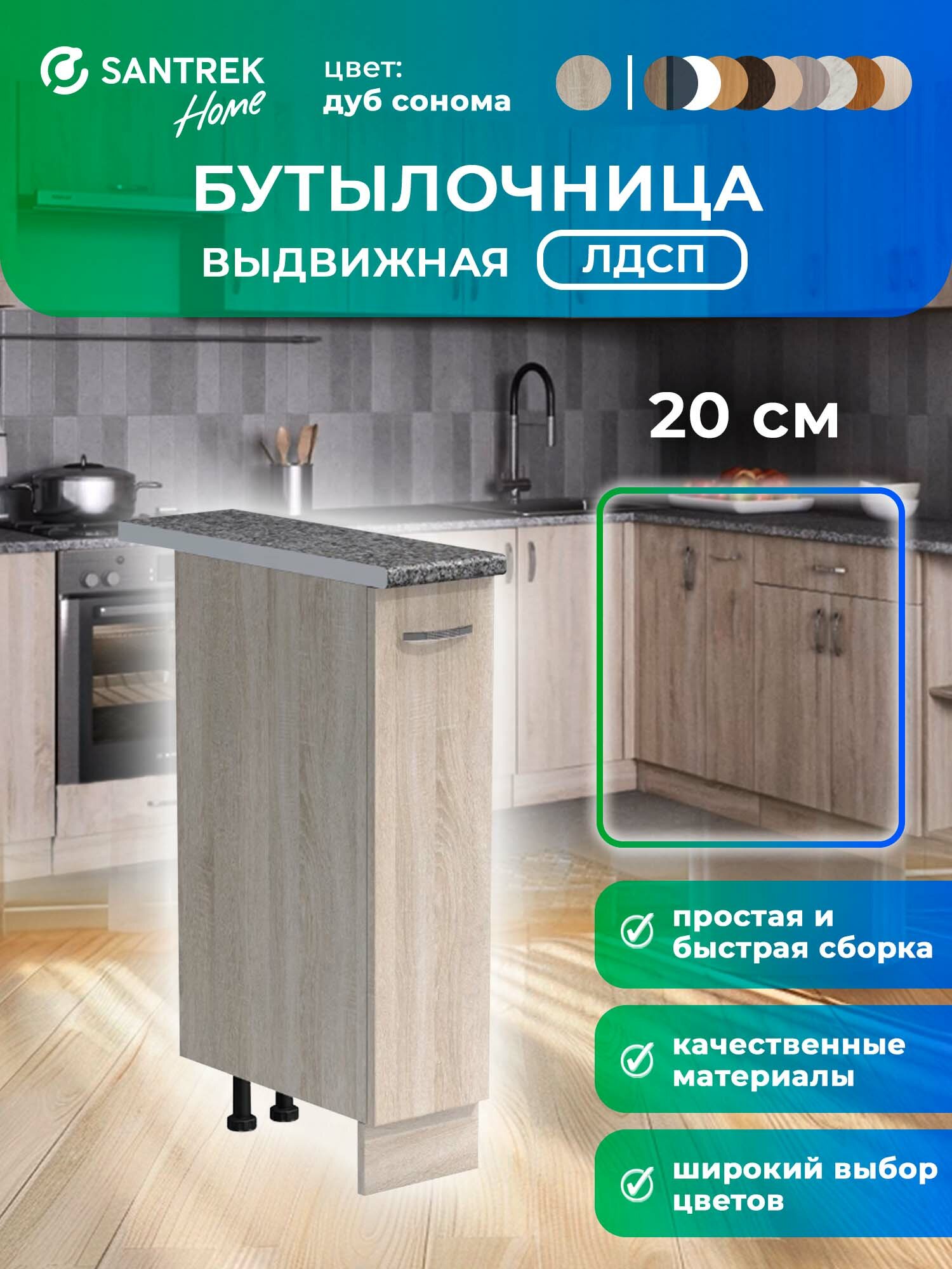 Кухонный гарнитур SANTREK модуль напольный бутылочница выдвижная 20 ЛДСП цвет дуб сонома столешница цвет гранит: сравнение цен, характеристики, фото, актуальное наличие и цены.