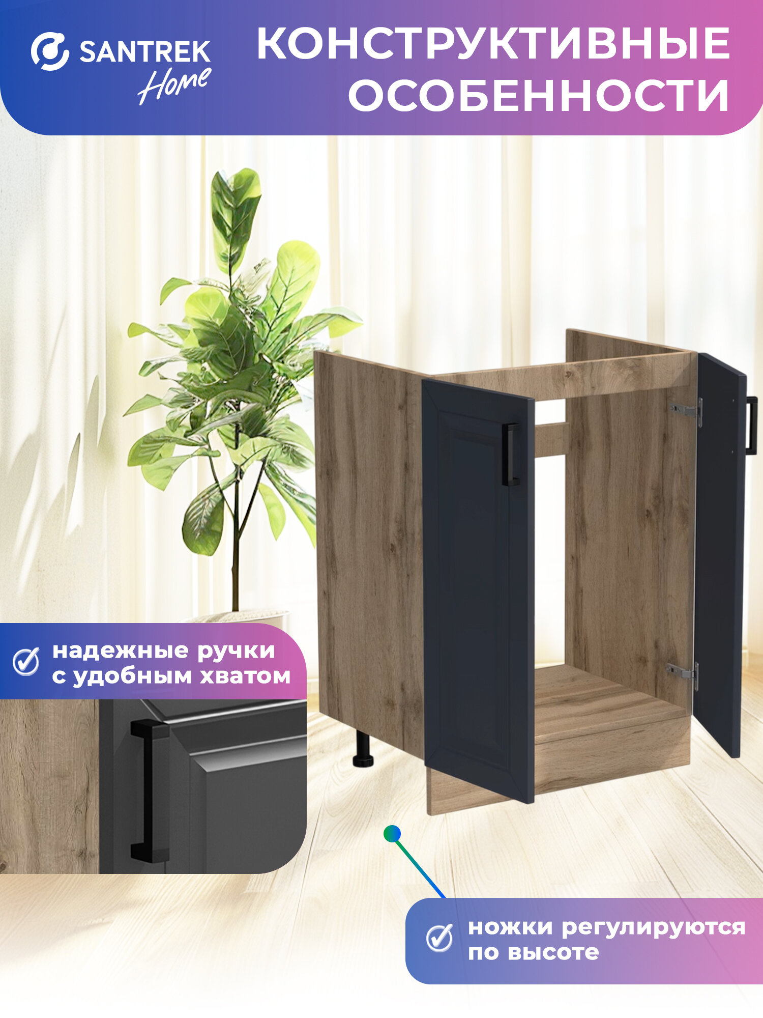 Кухонный гарнитур SANTREK Модуль напольный тумба под мойку 60*50 МДФ цвет графит: сравнение цен, характеристики, фото, актуальное наличие и цены.