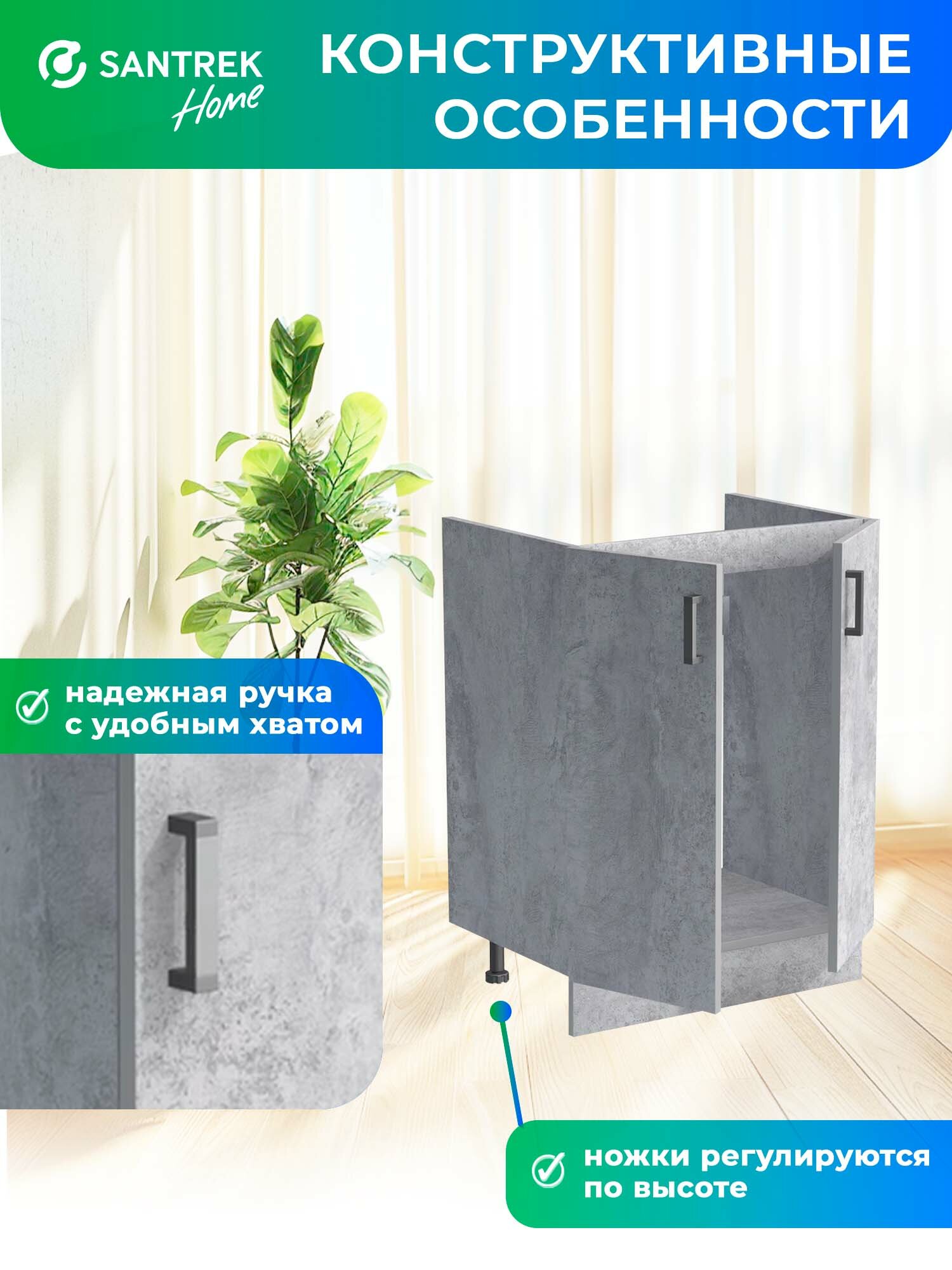 Кухонный гарнитур SANTREK Модуль напольный тумба под мойку 60*60 цвет бетон: сравнение цен, характеристики, фото, актуальное наличие и цены.