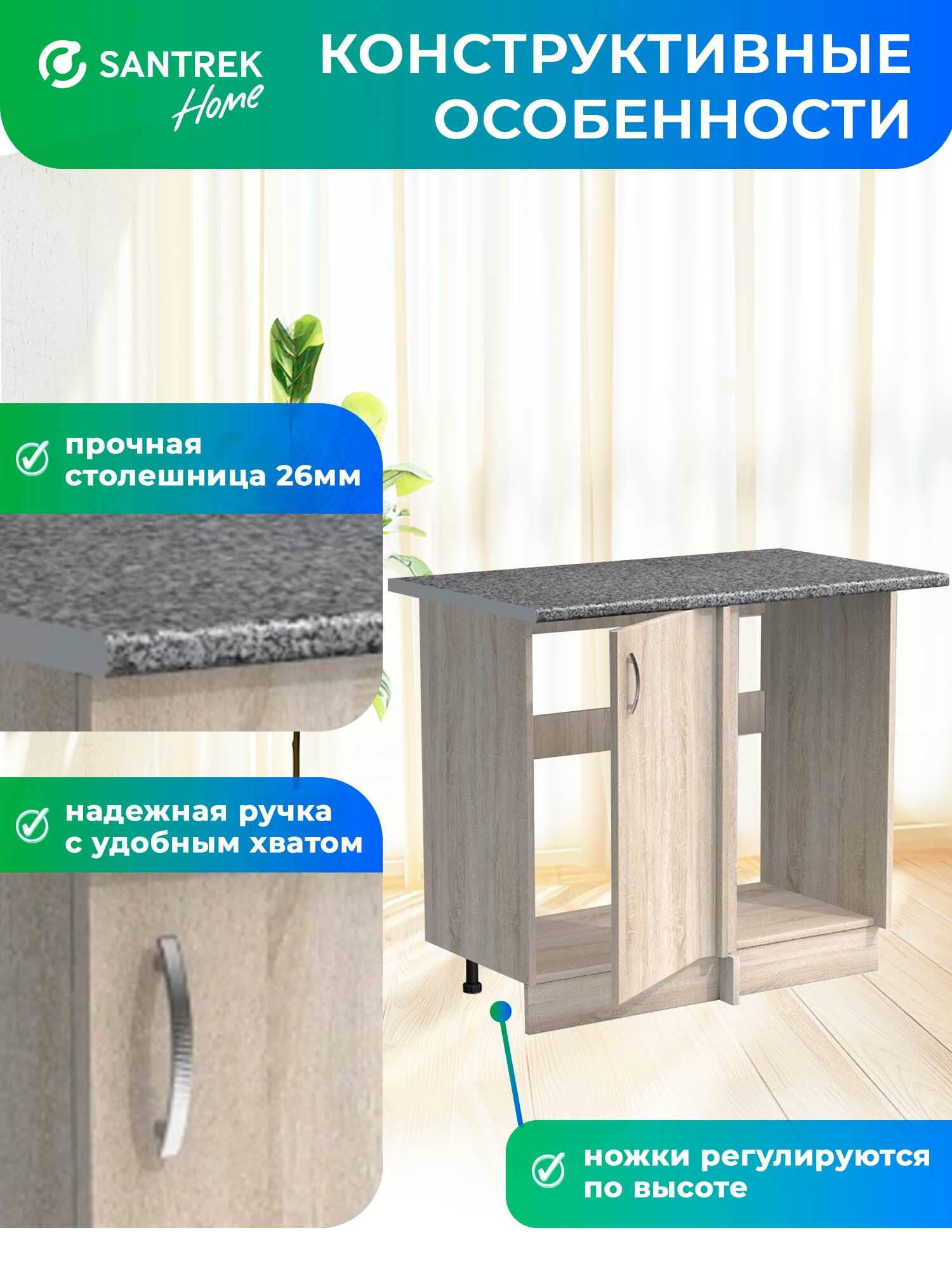 Кухонный гарнитур SANTREK Модуль напольный угловой -100 дуб сонома ЛДСП, столешница цвет гранит: сравнение цен, характеристики, фото, актуальное наличие и цены.