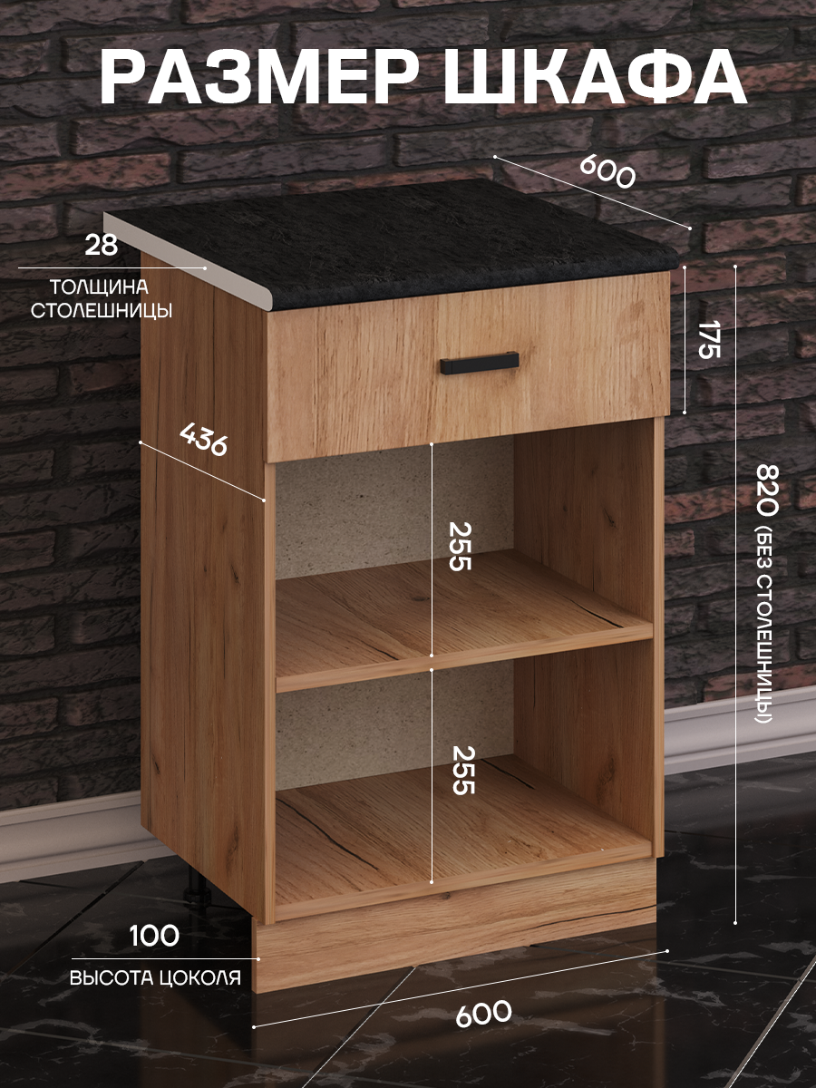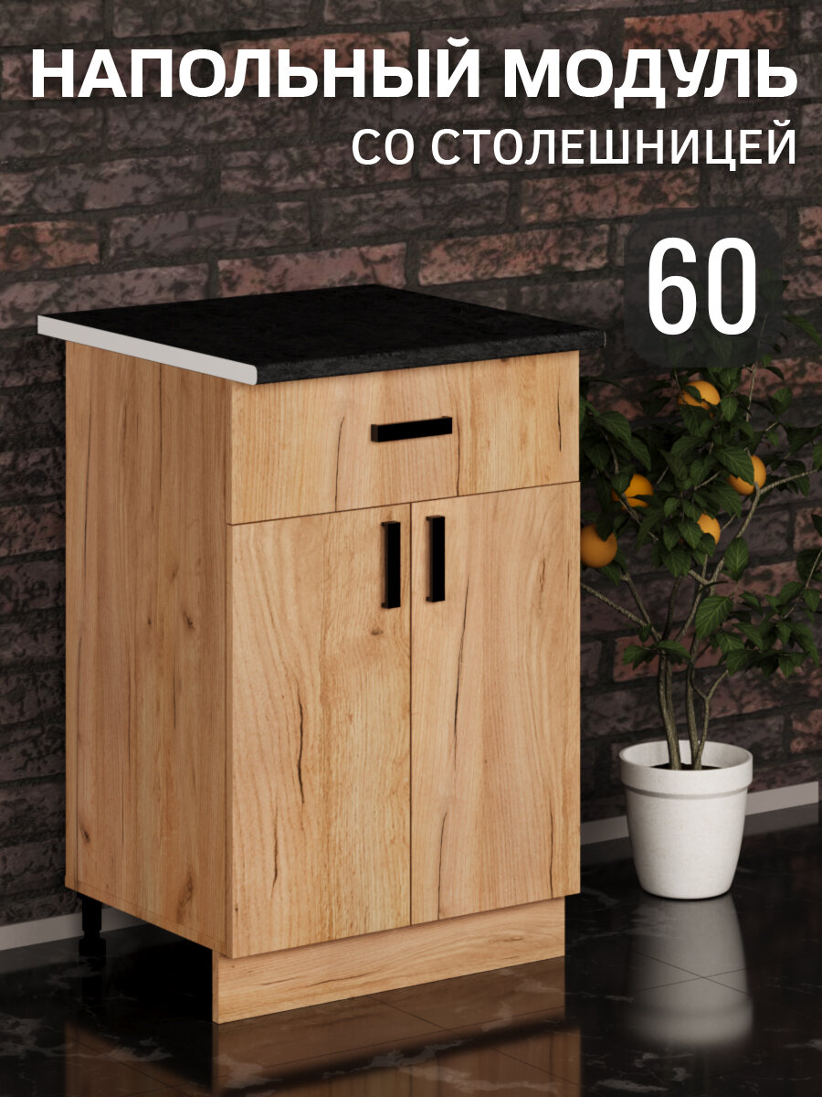 Купить Кухонный гарнитур. Стол разделочный со столешницей, 1 ящик. Модуль нижний, напольный, тумба 60х82х43,9 см, дуб крафт с доставкой по всей России. Кухонный гарнитур. Стол разделочный со столешницей, 1 ящик. Модуль нижний, напольный, тумба 60х82х43,9 см, дуб крафт: сравнение цен, характеристики, фото, актуальное наличие и цены.