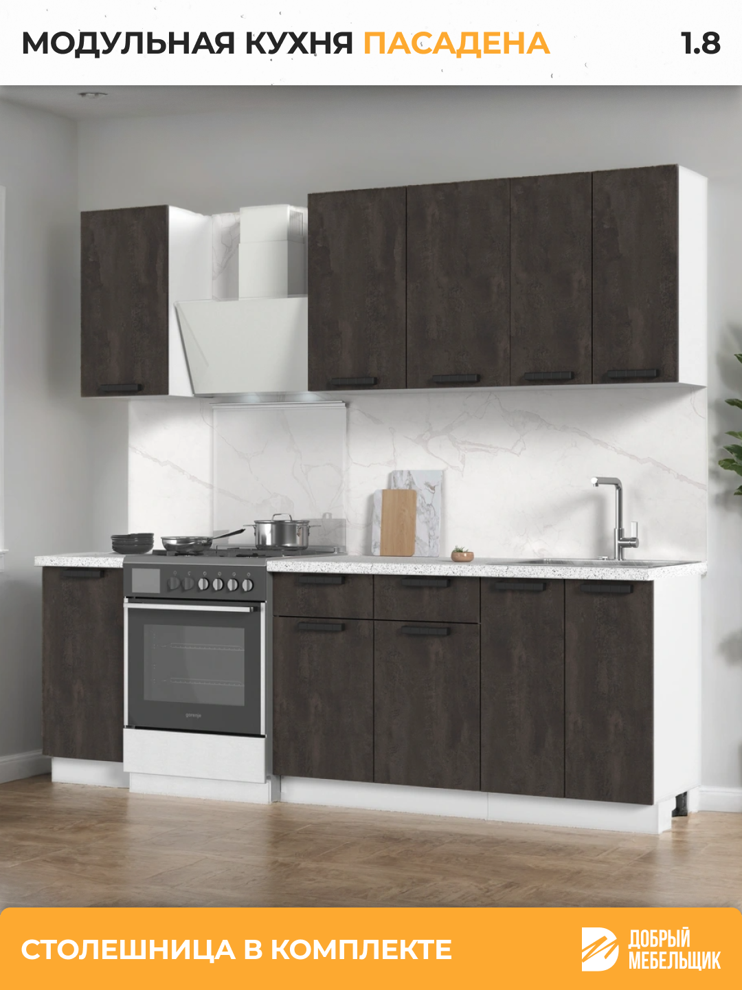 Кухонный гарнитур, столешница Гранит Белый 26мм, Кухня Пасаденна 180см Белый/Угольный камень: сравнение цен, характеристики, фото, актуальное наличие и цены.