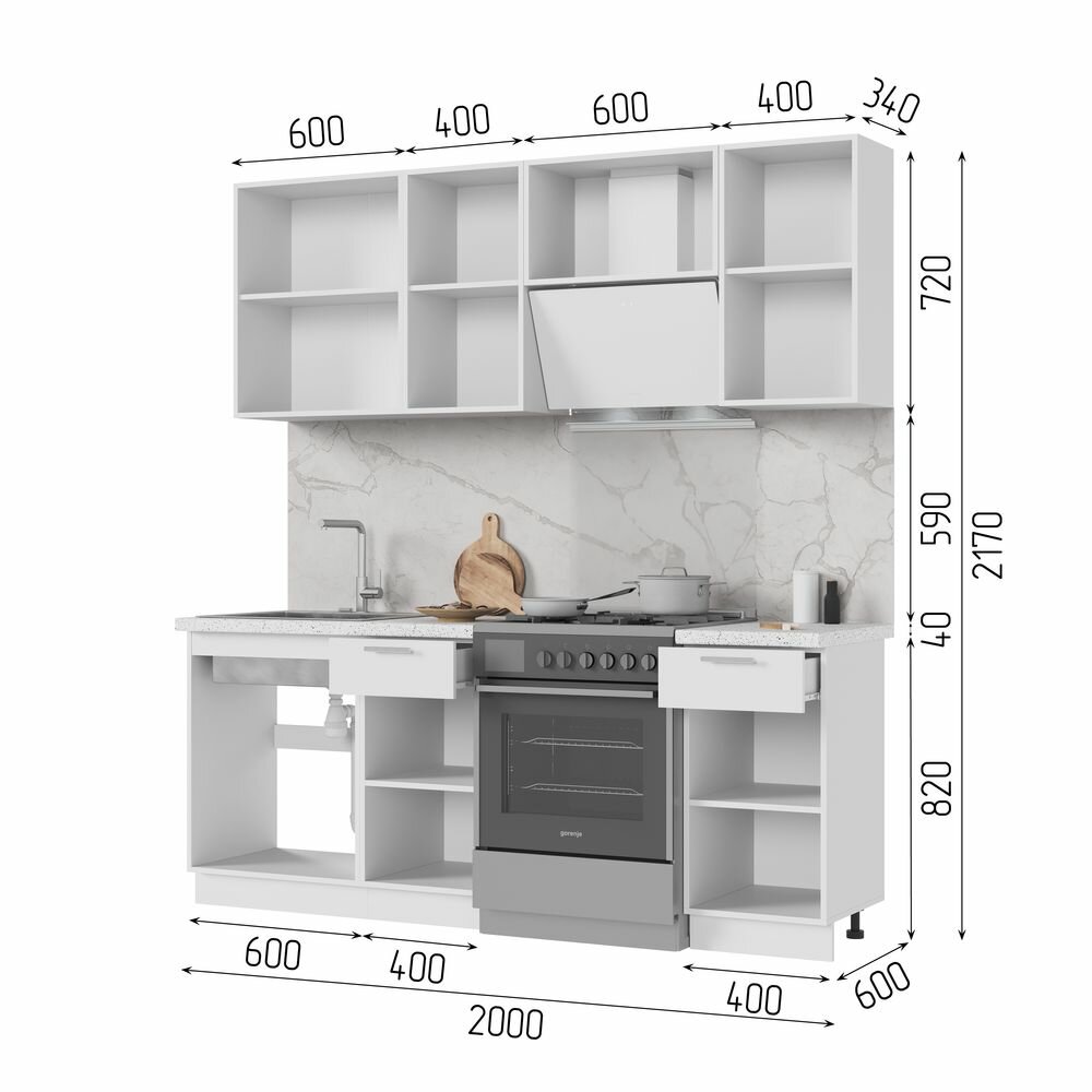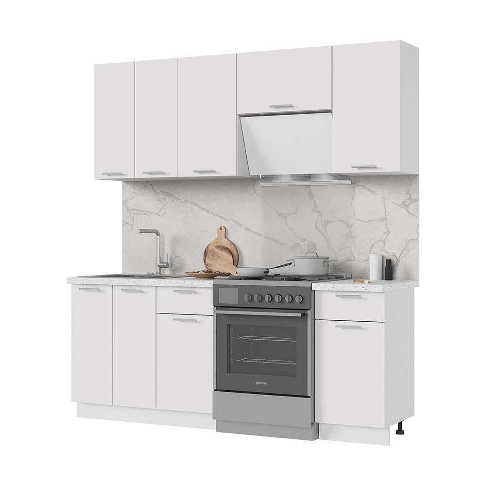 Кухонный гарнитур, столешница Гранит Белый 38мм, Кухня Ксения 200см Белый/Белый глянец: сравнение цен, характеристики, фото, актуальное наличие и цены.