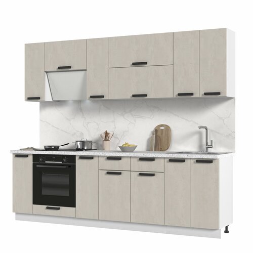 Купить Кухонный гарнитур, столешница Сахара 26мм, Пасаденна, 260см Белый/Шелковый камень с доставкой по всей России.