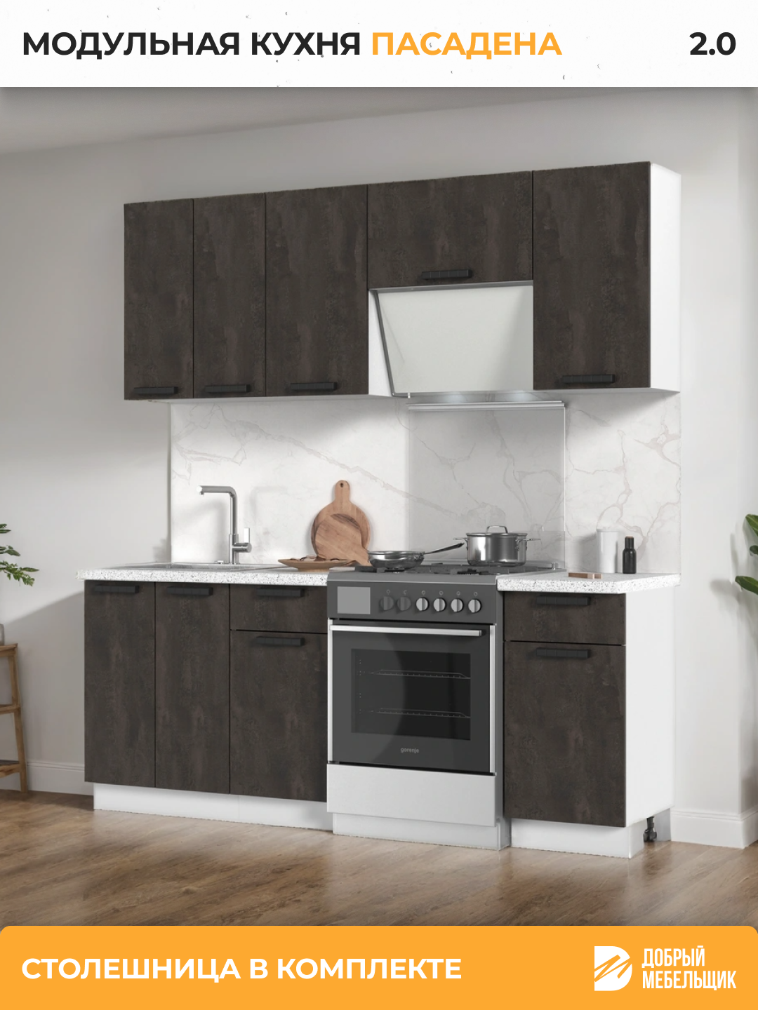 Кухонный гарнитур, столешница Гранит Белый 38мм, Кухня Пасаденна 200см Белый/Угольный камень: сравнение цен, характеристики, фото, актуальное наличие и цены.