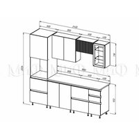 Верхние модули (ШхВхГ): ШВТ 300 - 28 х 71.8 х 28 см - 1 шт. ШВ 400 - 40 х 71.8 х 30 см - 2 шт. ШВС 400 - 40 х 71.8 х 30 см - 1 шт. ШВУ 600 - 60 х 71.8 х 60 см - 1 шт. Нижние модули (ШхВхГ): ШНТ 300 - 28 х 85 х 42.5 см - 1 шт. ШНУ 1000 - 100 х 85 х 44.5 см - 1 шт. ШН 400 - 40 х 85 х 44.5 см - 1 шт. ШН1Я 400 - 40 х 85 х 44.5 см - 1 шт. Столешница 30 см радиус (левый) - 1 шт. Столешница 40 см - 2 шт. Столешница 100 см - 1 шт.