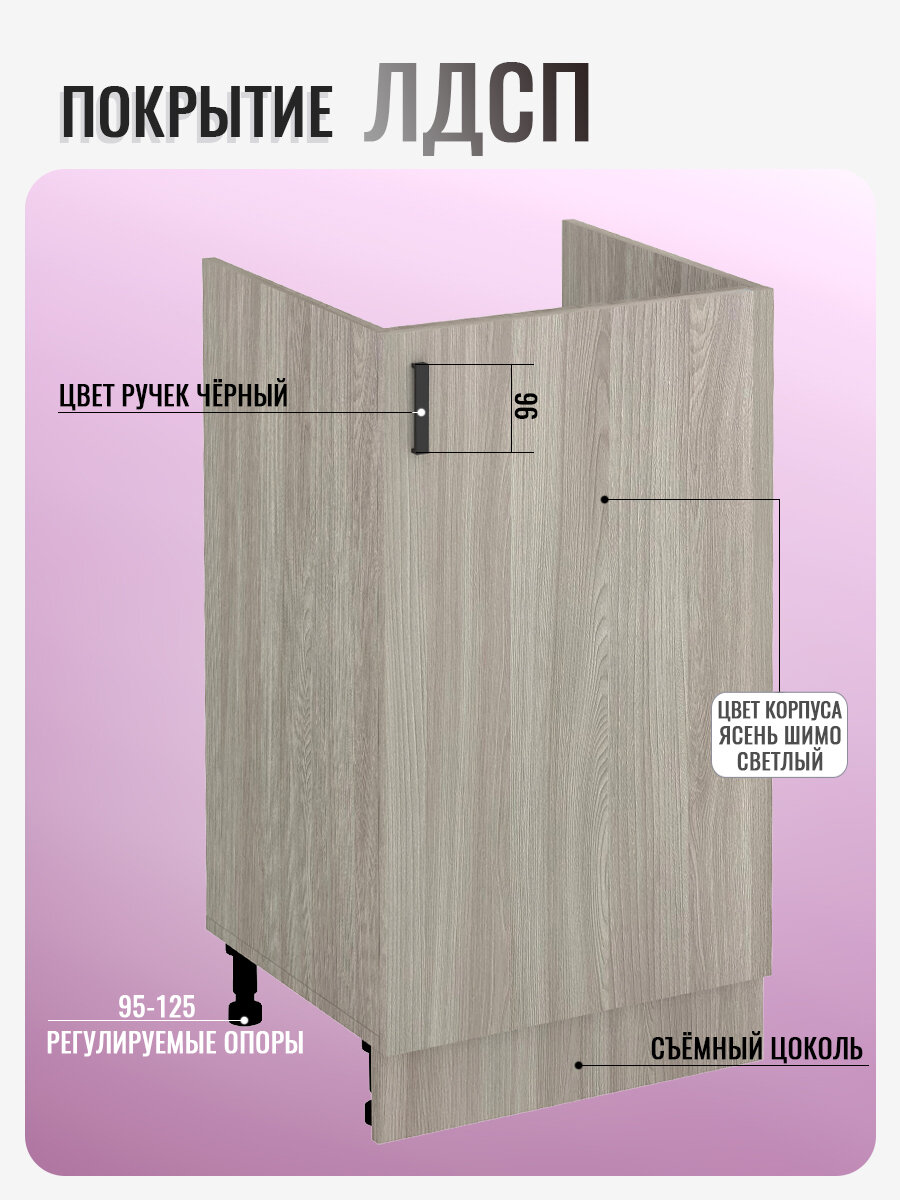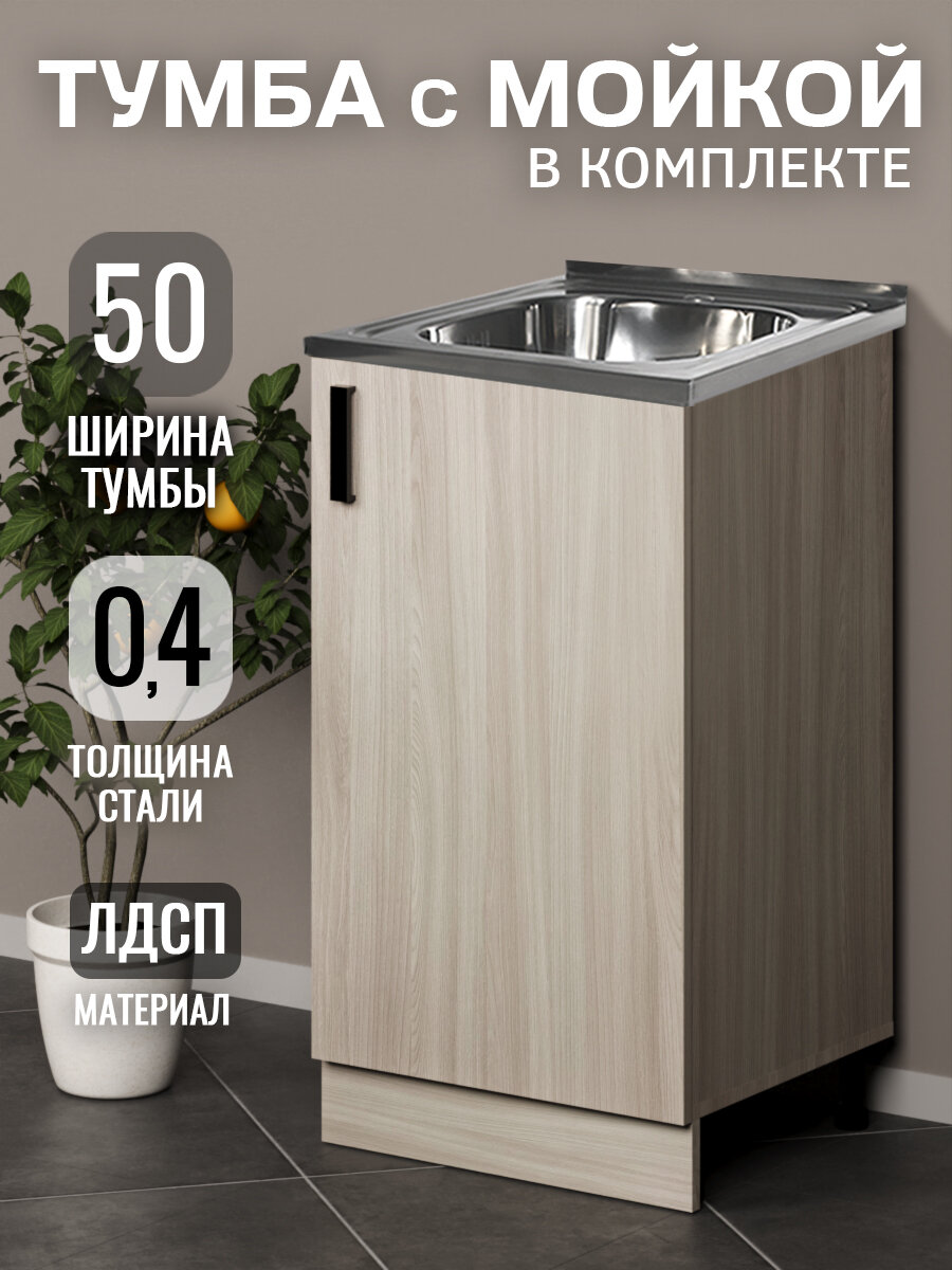 Кухонный гарнитур. Тумба 50 см в комплекте с мойкой 50х50х см из нержавеющей стали толщиной 0,4 мм, ясень шимо светлый: сравнение цен, характеристики, фото, актуальное наличие и цены.