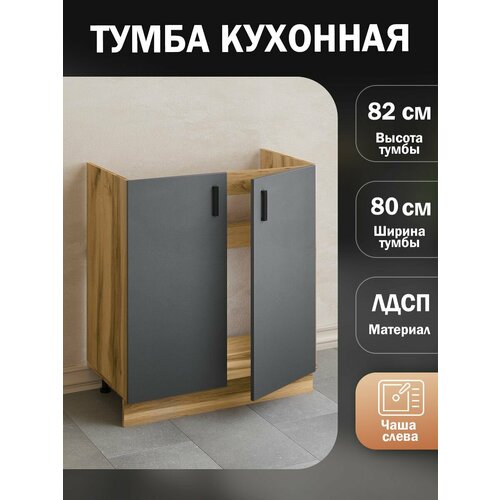 Купить Кухонный гарнитур. Тумба под мойку на кухню. Модуль напольный, нижний 80х43,6х82 см, графит с доставкой по всей России. Кухонный гарнитур. Тумба под мойку на кухню. Модуль напольный, нижний 80х43,6х82 см, графит: сравнение цен, характеристики, фото, актуальное наличие и цены.