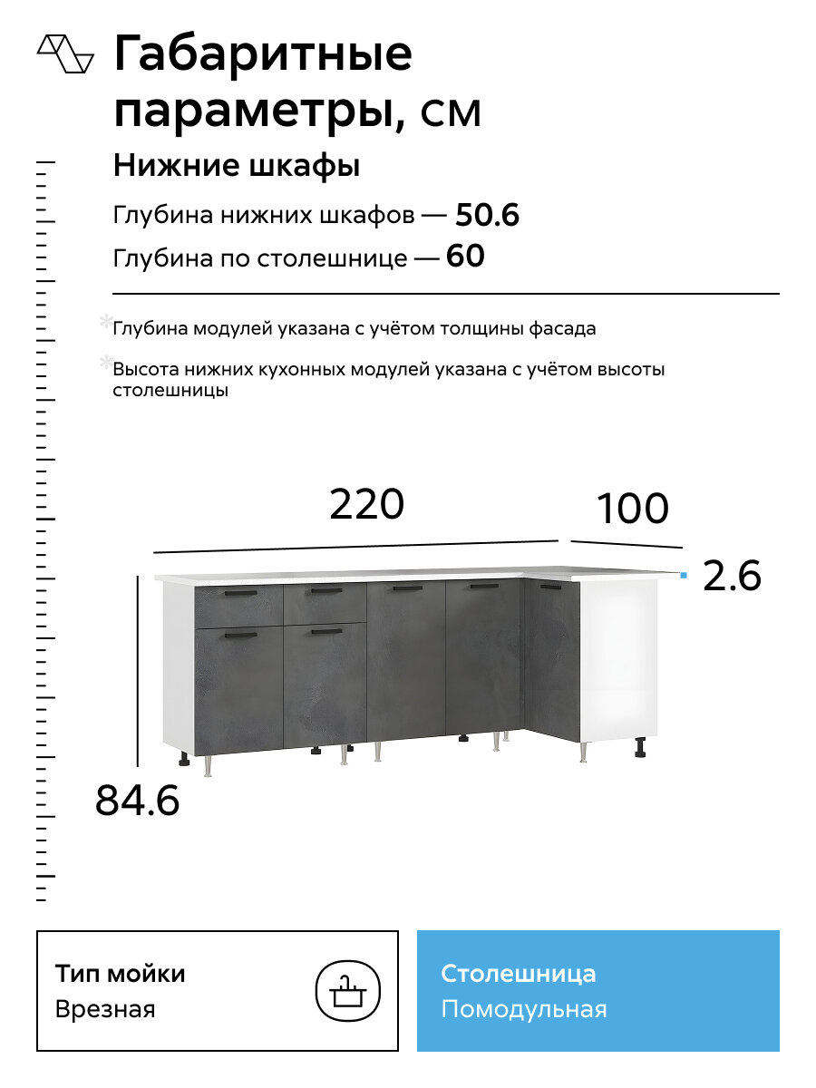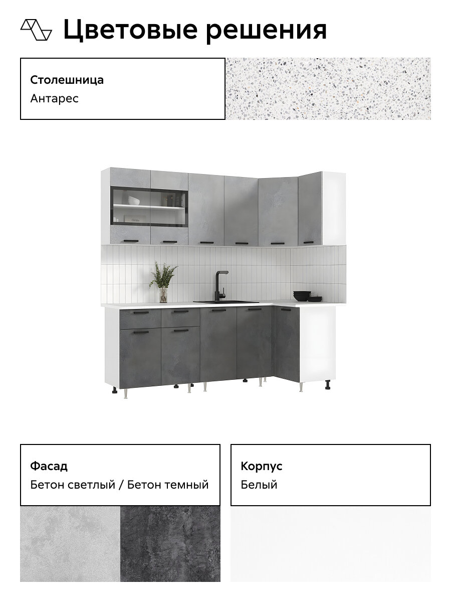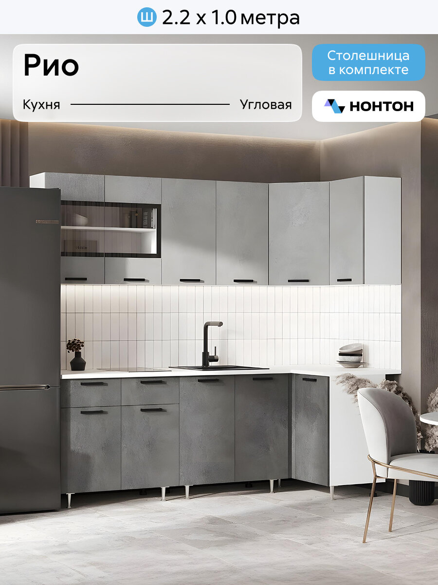 Кухонный гарнитур угловой Нонтон Рио NEW, 220х100 см, бетон светлый / бетон темный / антарес: сравнение цен, характеристики, фото, актуальное наличие и цены.