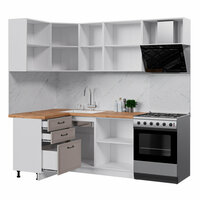 Габаритные размеры верхних шкафов: высота 71,6 см, глубина 31,8 см Габаритные размеры нижних шкафов: высота 81,6 см, глубина 47,8 см (без учета столешницы)