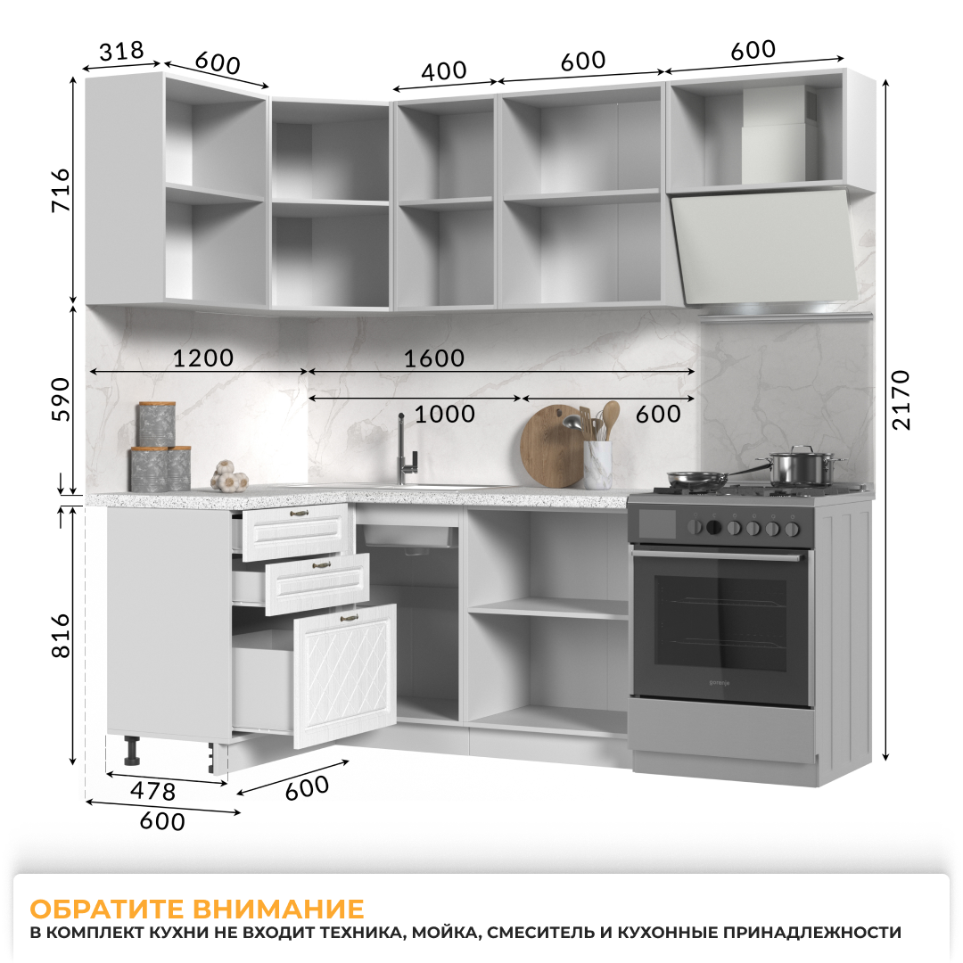 Кухонный гарнитур угловой, столешница Гранит Белый 26мм, Кухня Модена, 120х220см Белый/Дуб Белый: сравнение цен, характеристики, фото, актуальное наличие и цены.