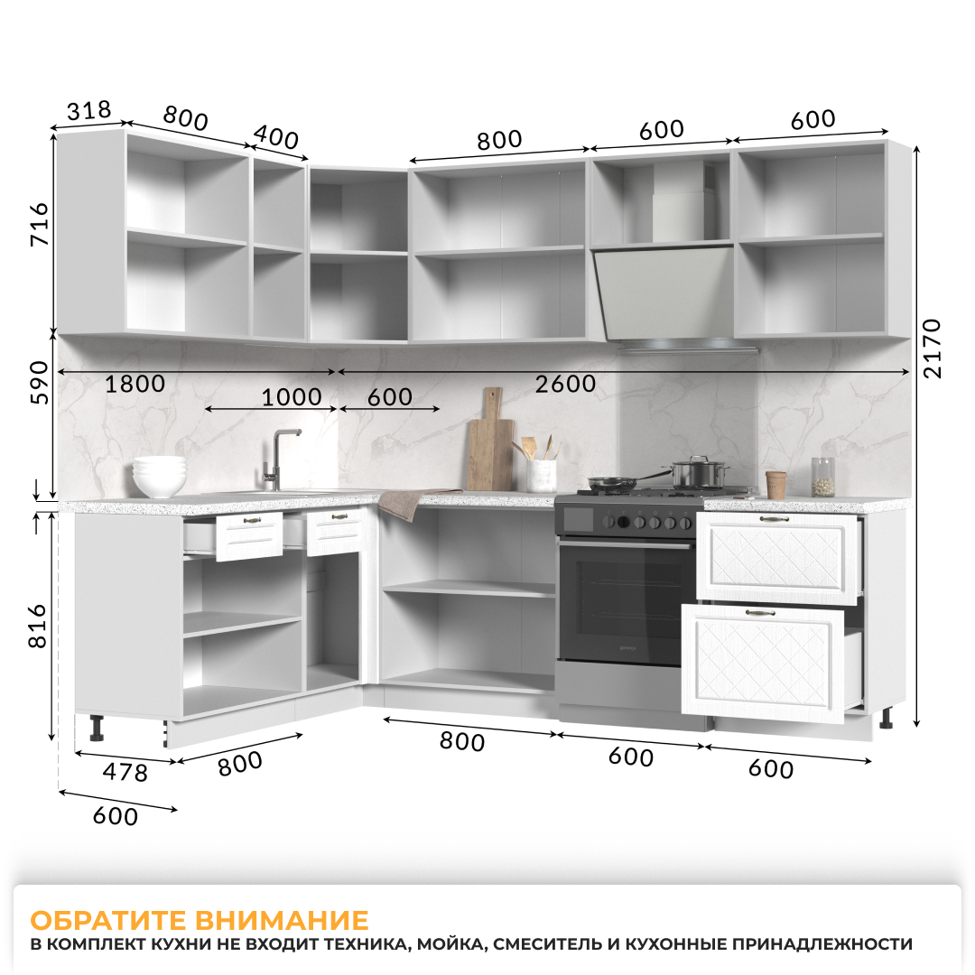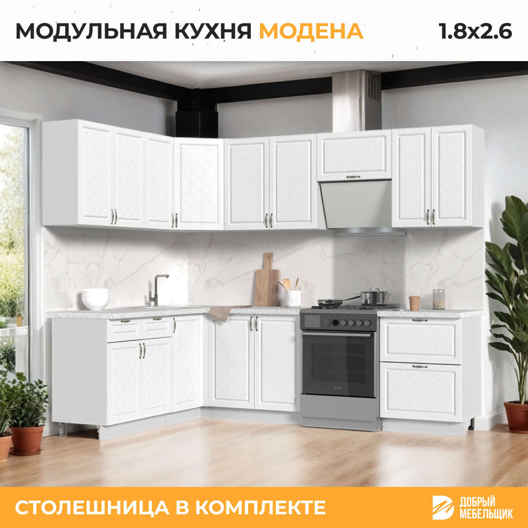 Кухонный гарнитур угловой, столешница Гранит Белый 26мм, Кухня Модена, 180х260см Белый/Дуб Белый: сравнение цен, характеристики, фото, актуальное наличие и цены.