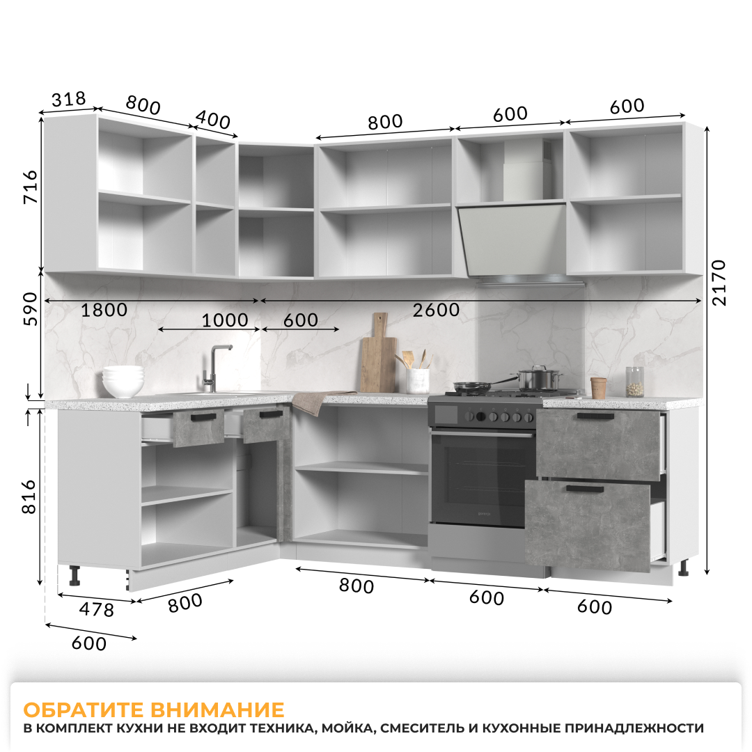 Кухонный гарнитур угловой, столешница Гранит Белый 38мм, Кухня Пасаденна, 180х260см Белый/Ателье Светлое: сравнение цен, характеристики, фото, актуальное наличие и цены.