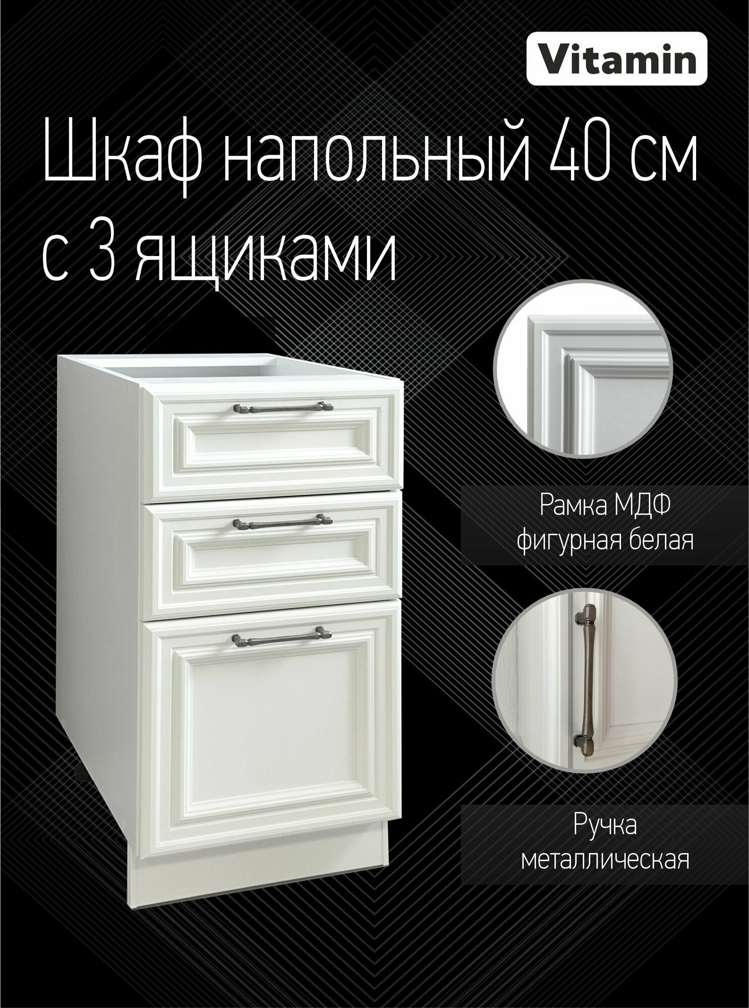 Кухонный гарнитур VITAMIN модульный шкаф напольный с 3 ящиками МДФ, Цвет «Барселона» ширина 40 см.: сравнение цен, характеристики, фото, актуальное наличие и цены.