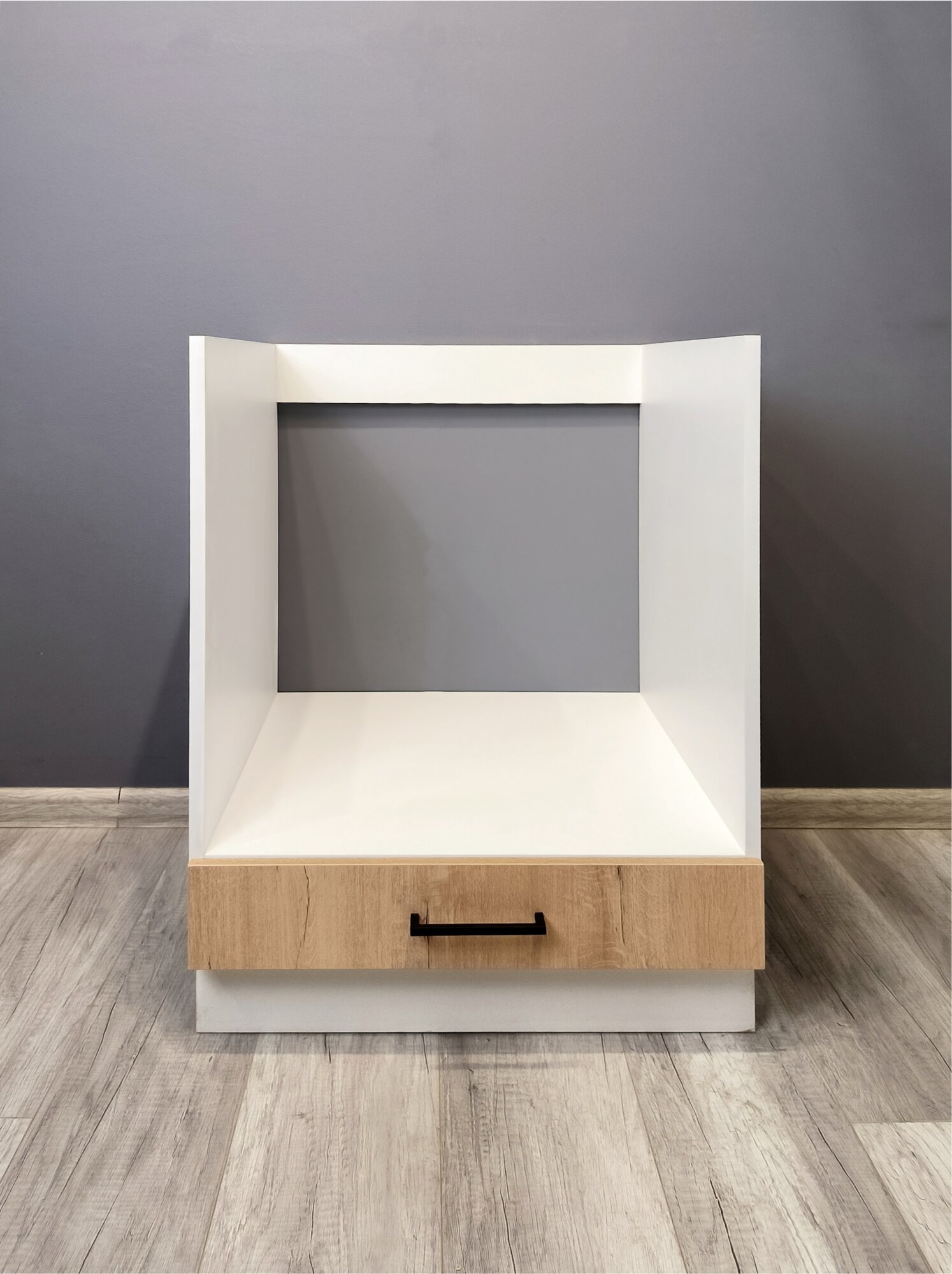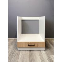 Поставляется без столешницы. Кухонный шкаф под встраиваемую технику шириной 60 см без столешницы от бренда VITAMIN является одной из востребованных позиций для кухонного гарнитура. Размеры модуля позволяют установить встраиваемый духовой шкаф шириной 60 см. Кухонная тумба оснащена ящиком с роликовыми направляющими. Отверстия под ручку на панели ящика просверлены насквозь. Межцентровое расстояние ручки составляет 128 мм. Материал фасада: ЛДСП «Дуб ирландский». Материал корпуса: ЛДСП белый. В комплект кухонной тумбы входит цоколь высотой 100 мм. Каркас и фасад кухонного модуля изготовлены из ЛДСП толщиной 16 мм класса эмиссии E1 и облицованы кромкой ПВХ 1 мм, что обеспечивает прочность и безопасность использования. Шкаф для кухни поставляется без столешницы. Для шкафа необходима столешница размером (ШхГ) 600х600 мм. В нашем ассортименте представлены пластиковые столешницы длиной 400, 600, 800 и 1000 мм в двух декорах: "Дуб Вотан" и "Мрамор Лацио белый". Можно заказать отдельную столешницу для каждой позиции кухни, можно объединить несколько позиций одной столешницей. Ящик модуля небольшой, но позволяет удобно хранить различные мелкие кухонные принадлежности, что поможет поддерживать порядок и экономить пространство. Тумба совместима с другими модулями VITAMIN, что позволяет самостоятельно смоделировать кухонный гарнитур нужной конфигурации. Кухонный модуль напольный функционален и может быть использован как шкаф для духовки и варочной поверхности, для хранения вещей на кухне, тумба для хранения кухонных принадлежностей, шкаф для посуды.