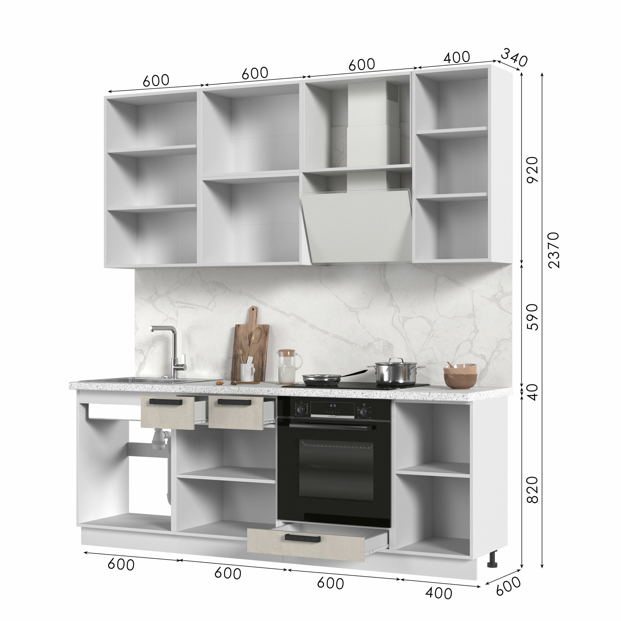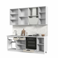 Кухонный гарнитур высокий, без столешницы, Кухня Пасаденна 220 см, h=2370мм, Белый / Шелковый камень: сравнение цен, характеристики, фото, актуальное наличие и цены.