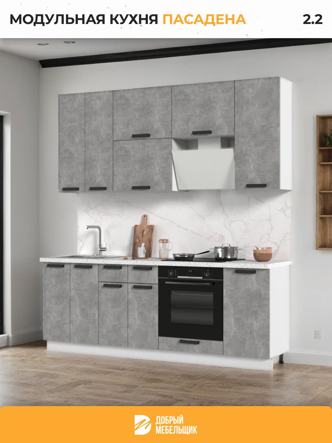 Кухонный гарнитур высокий, столешница Гранит Белый 26мм, Кухня Пасаденна 220 см, h=2370мм, Белый/Ателье Светлое: сравнение цен, характеристики, фото, актуальное наличие и цены.