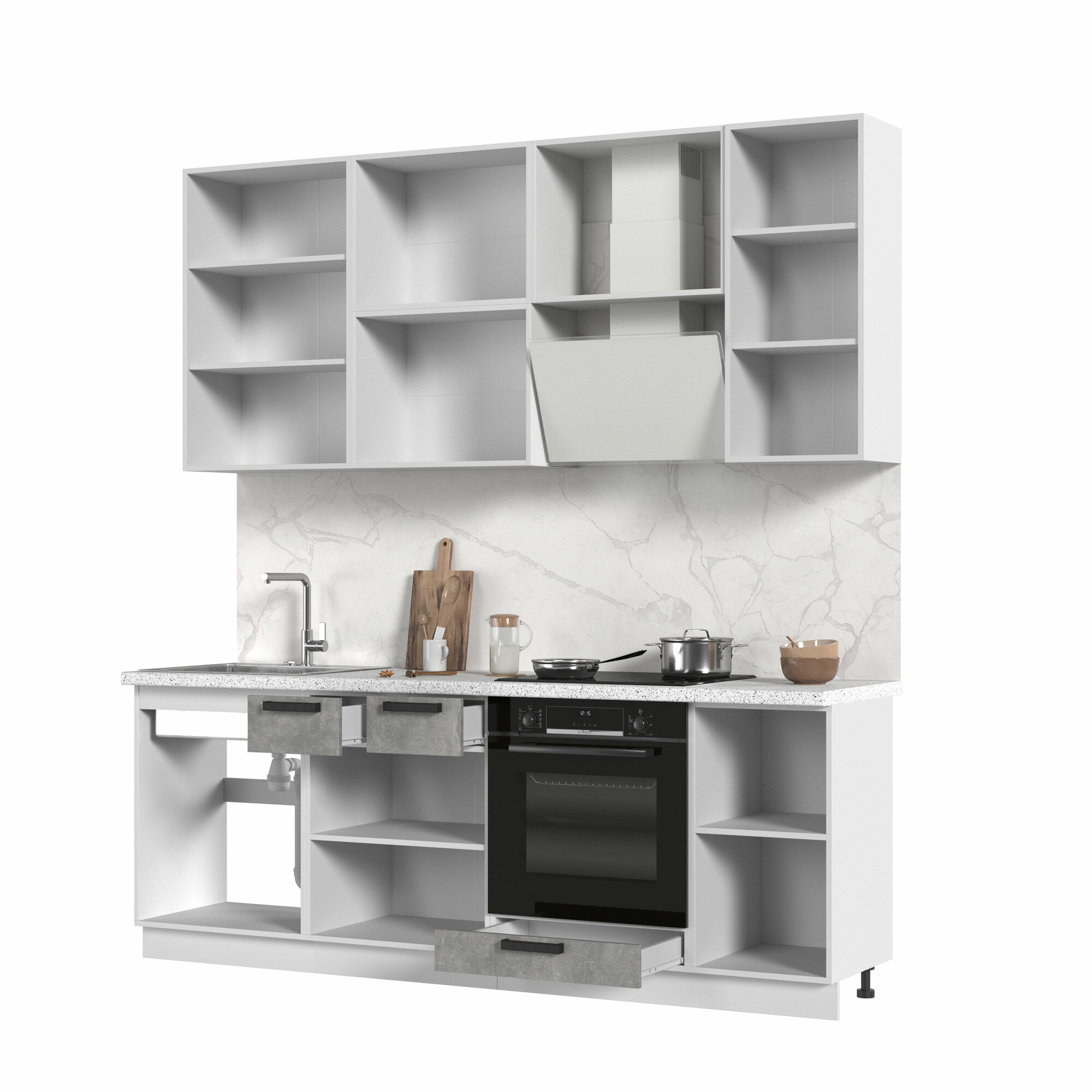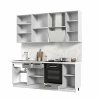 Кухонный гарнитур высокий, столешница Гранит Белый 38мм, Кухня Пасаденна 220 см, h=2370мм, Белый/Ателье Светлое: сравнение цен, характеристики, фото, актуальное наличие и цены.