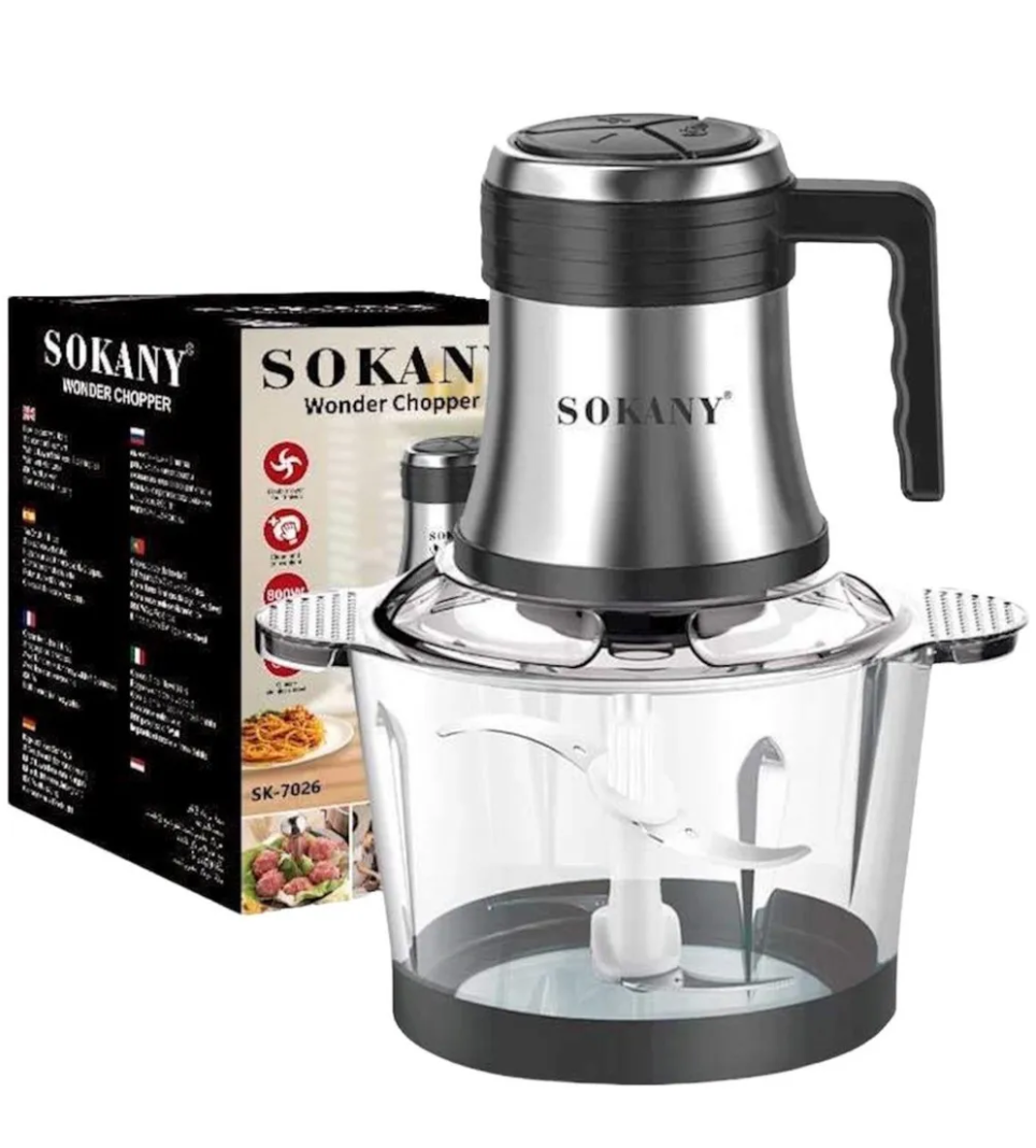 Кухонный измельчитель чоппер SOKANY SK-7026 серебристый, 800 Вт 3 л: сравнение цен, характеристики, фото, актуальное наличие и цены.