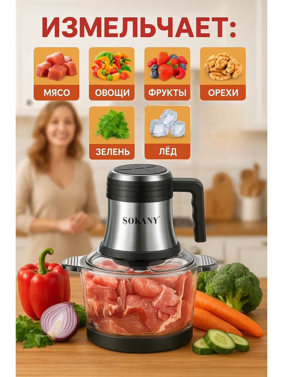Купить Кухонный измельчитель чоппер SOKANY SK-7026 серебристый, 800 Вт 3 л с доставкой по всей России. Кухонный измельчитель чоппер SOKANY SK-7026 серебристый, 800 Вт 3 л: сравнение цен, характеристики, фото, актуальное наличие и цены.