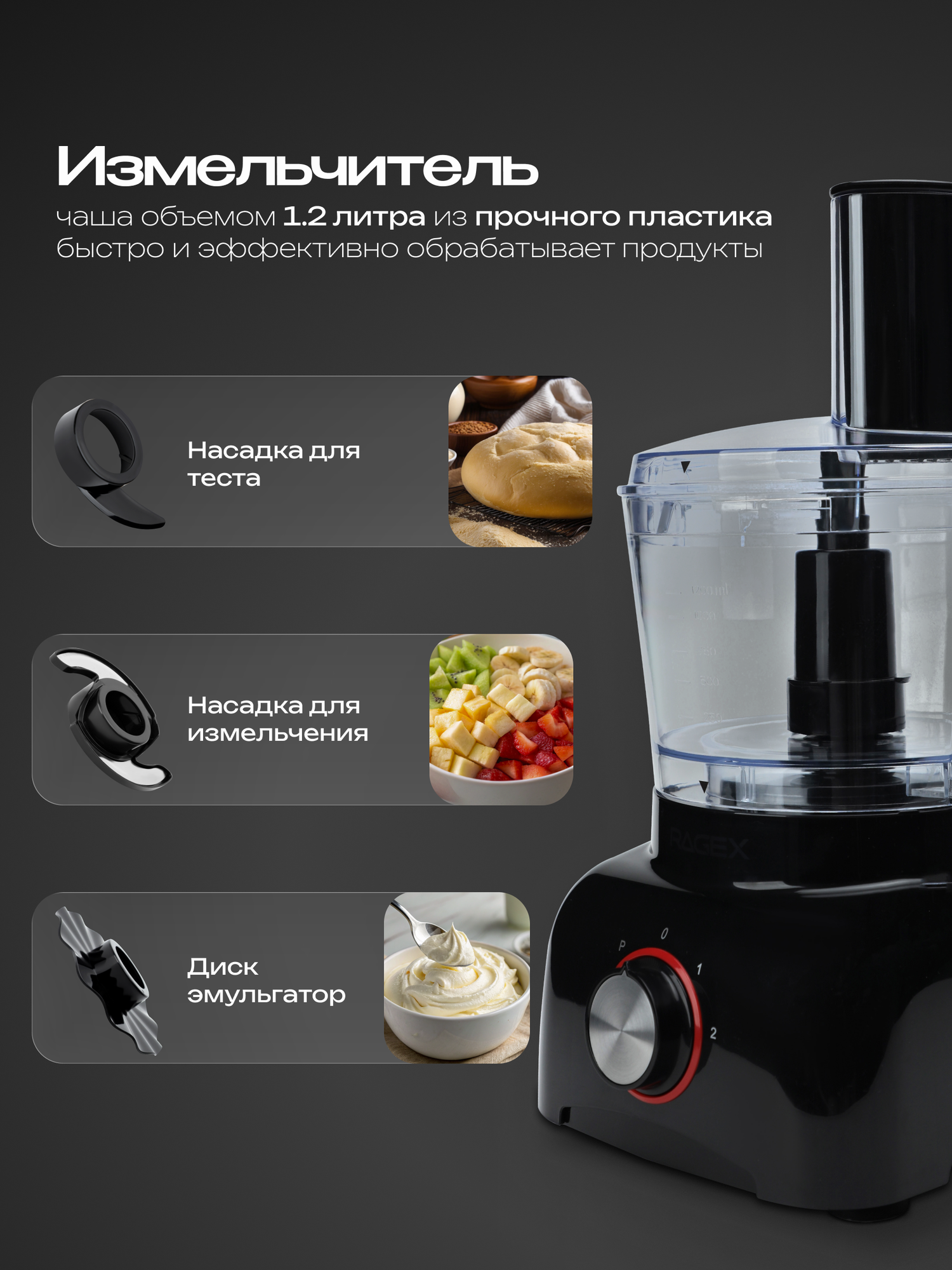 Кухонный комбайн RAGEX R113-000 — это отличный выбор для тех, кто ценит многофункциональность, качество и стиль. Он подходит для приготовления разнообразных блюд и станет надежным помощником на кухне.