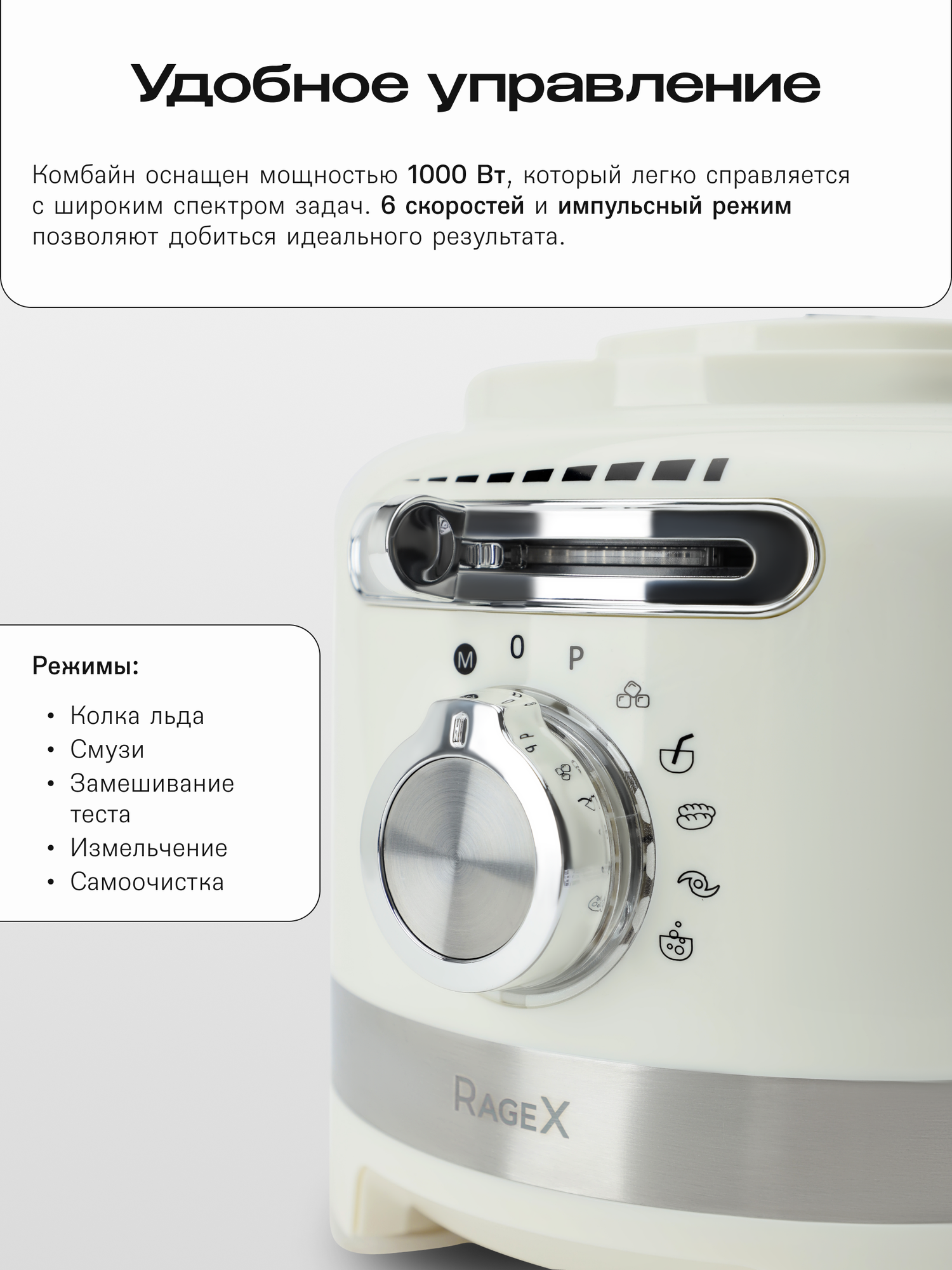 Кухонный комбайн RAGEX R108-105 — это отличный выбор для тех, кто ценит многофункциональность, качество и стиль. Он подходит для приготовления разнообразных блюд и станет надежным помощником на кухне.