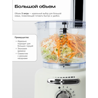 Кухонный комбайн RAGEX R108-105 — это многофункциональное устройство, которое подходит для выполнения широкого спектра задач на кухне. Он сочетает в себе функции измельчения, нарезки, взбивания и других операций, что делает его удобным для приготовления разнообразных блюд.