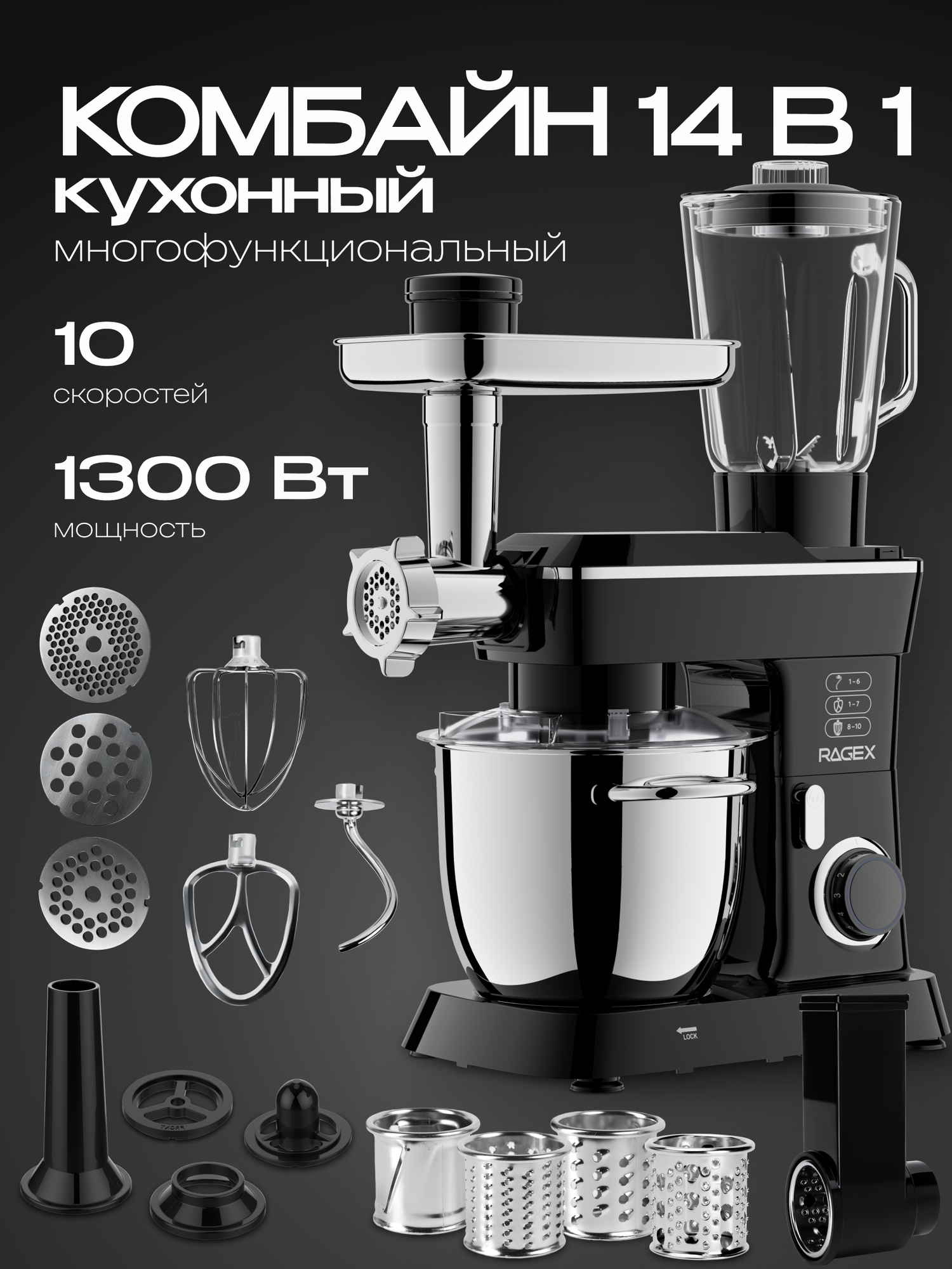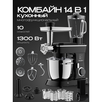 Кухонный комбайн 14 в 1, 4.5 литра, 10 скоростей, 1300 Вт, черный: сравнение цен, характеристики, фото, актуальное наличие и цены.