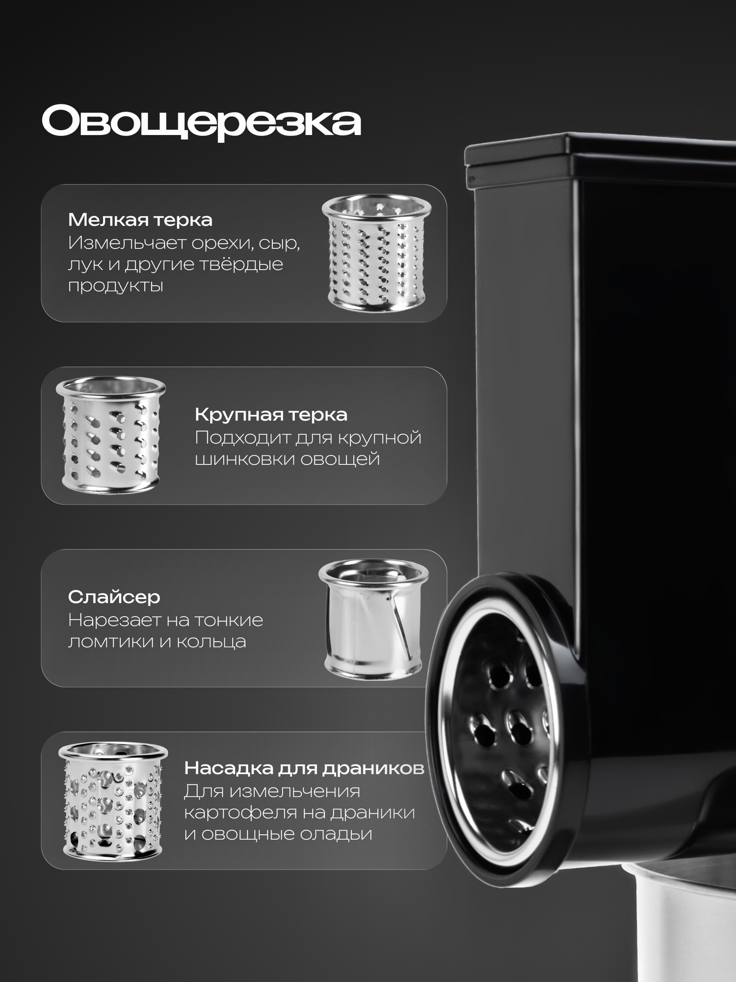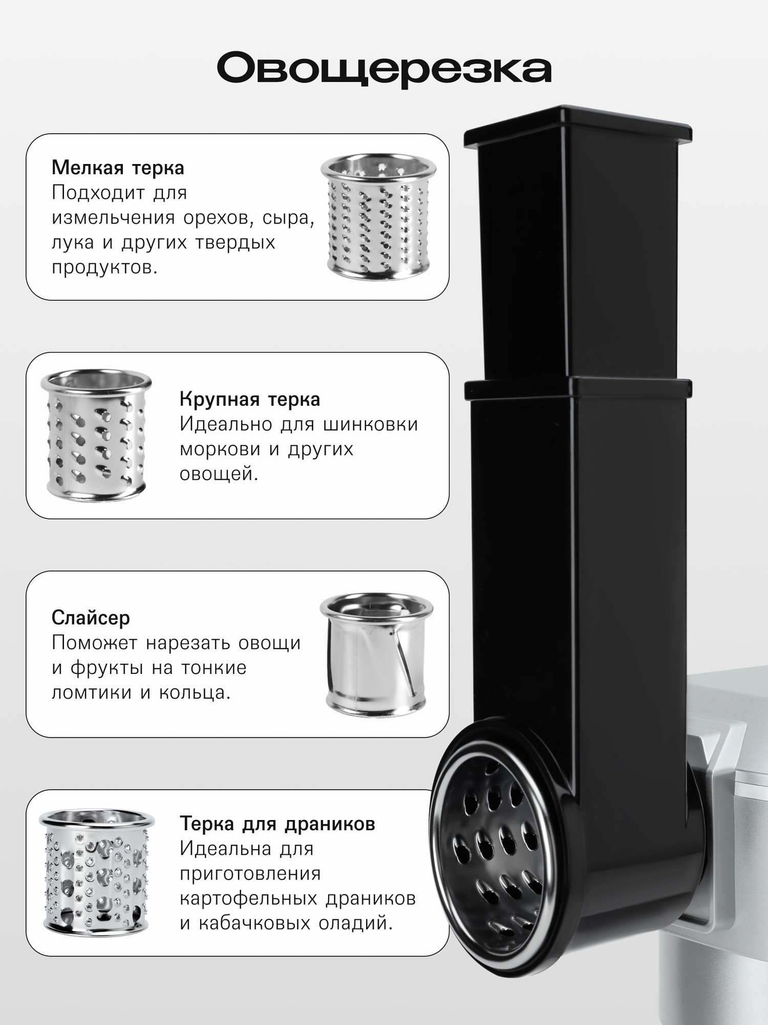 - Высокая мощность: обеспечивает быструю и эффективную обработку даже твердых продуктов .