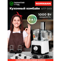 Купить Кухонный комбайн NORMANN AFP-949, 9 в 1, 1.2 л, 7 насадок, измельчение, взбивание, терка с доставкой по всей России.